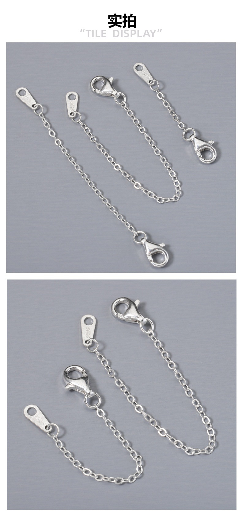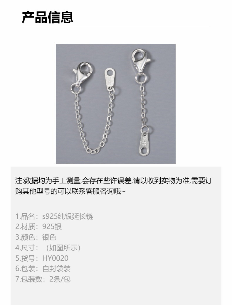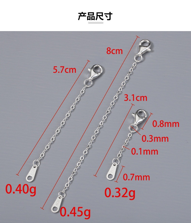 s925纯银延长链 龙虾扣尾链吊坠 通体银链条 diy手链项链饰品配件