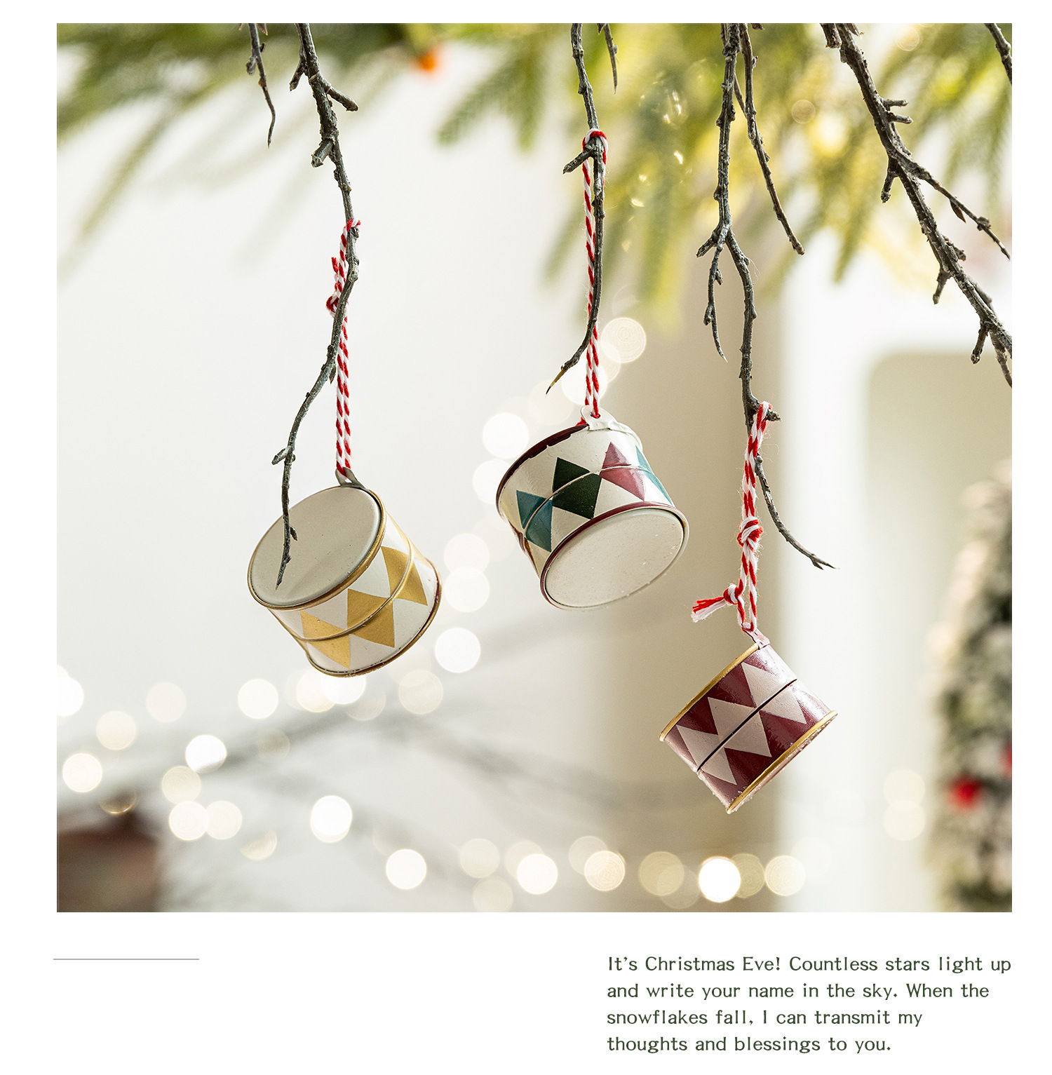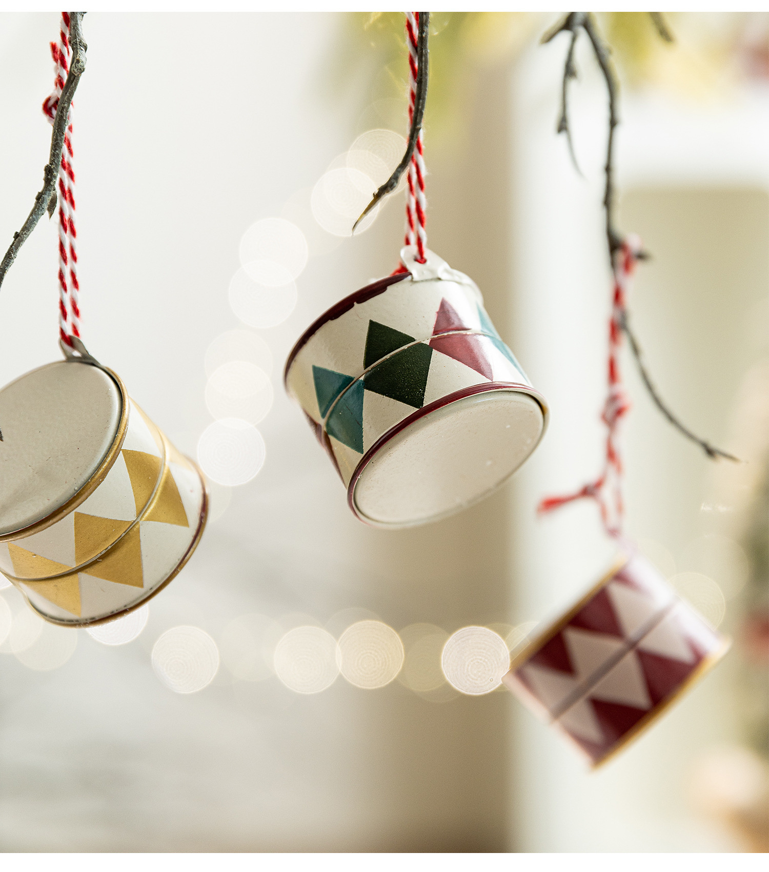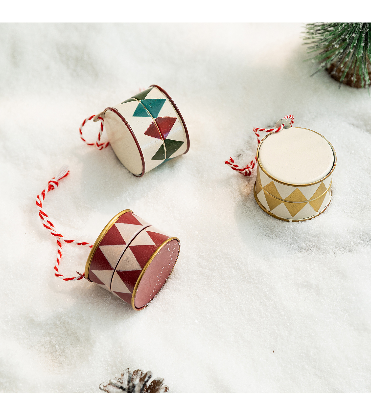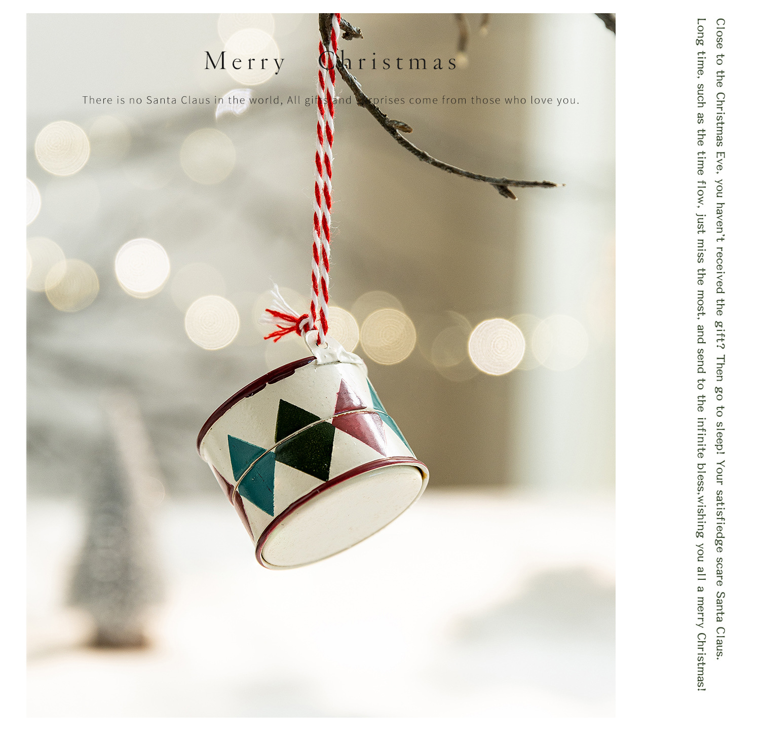 跨境圣诞节装饰品北欧彩绘锣鼓铁艺挂件桌面小摆件圣诞树挂饰装扮