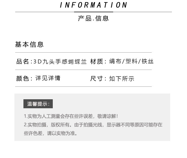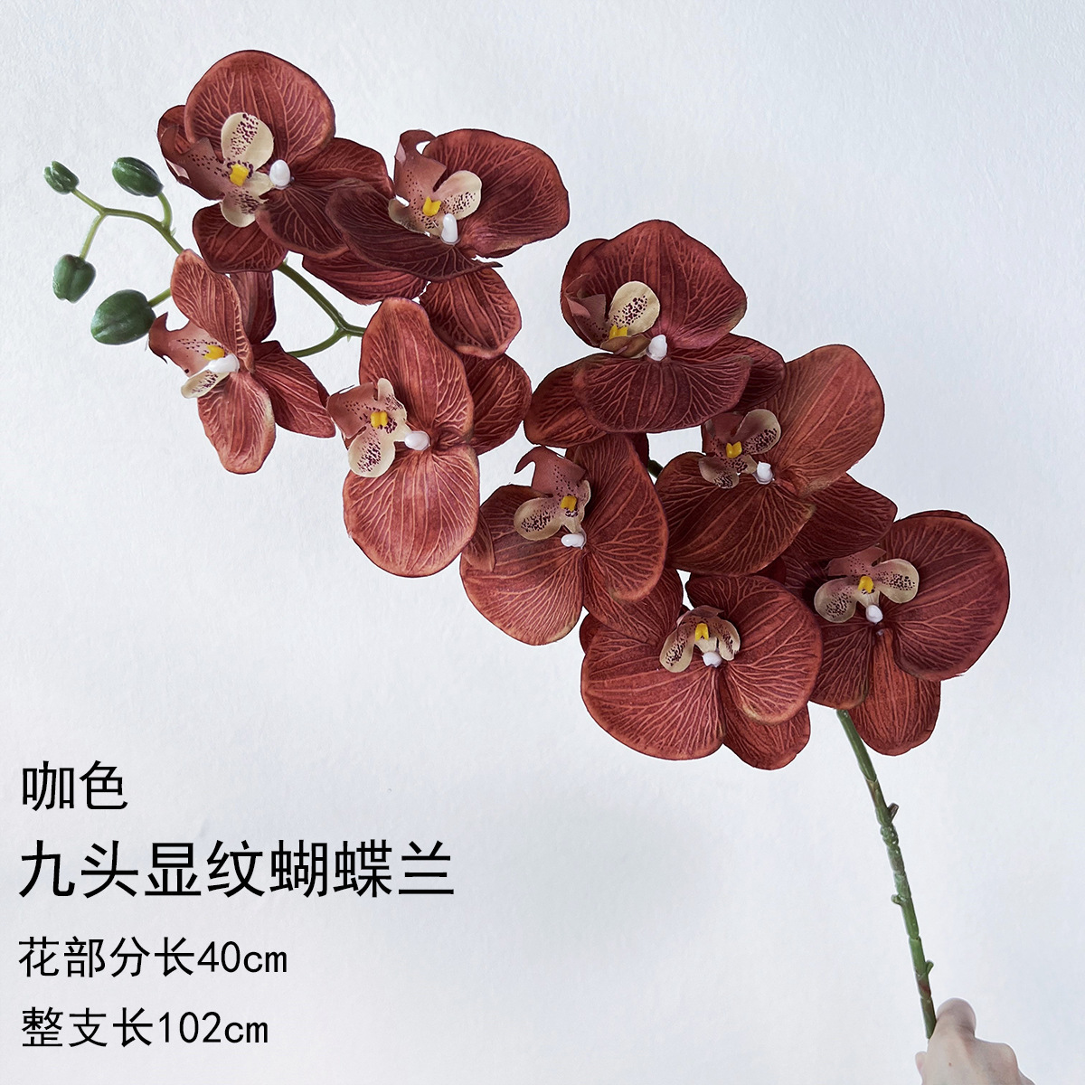 九头蝴蝶兰仿真花3D手感花婚礼堂布景花束婚庆装饰兰花假花人造花