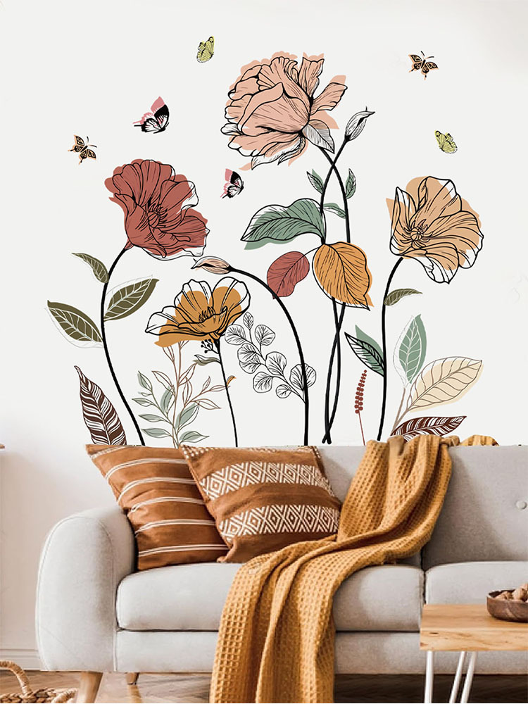 跨境波西米亚花朵墙贴野花客厅卧室背景墙壁艺术装饰自粘贴纸