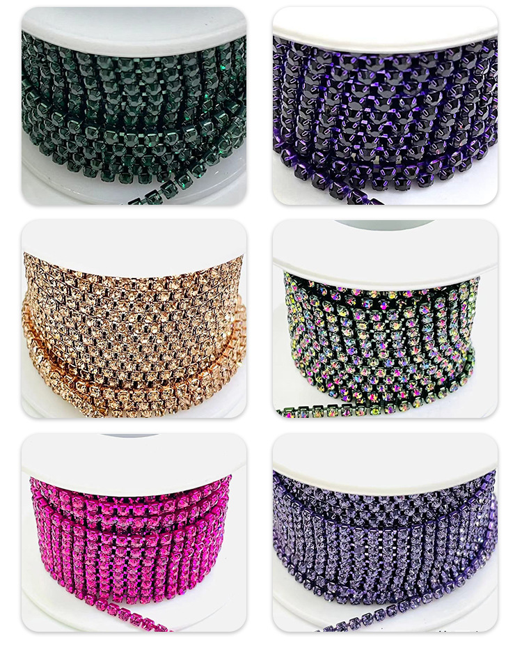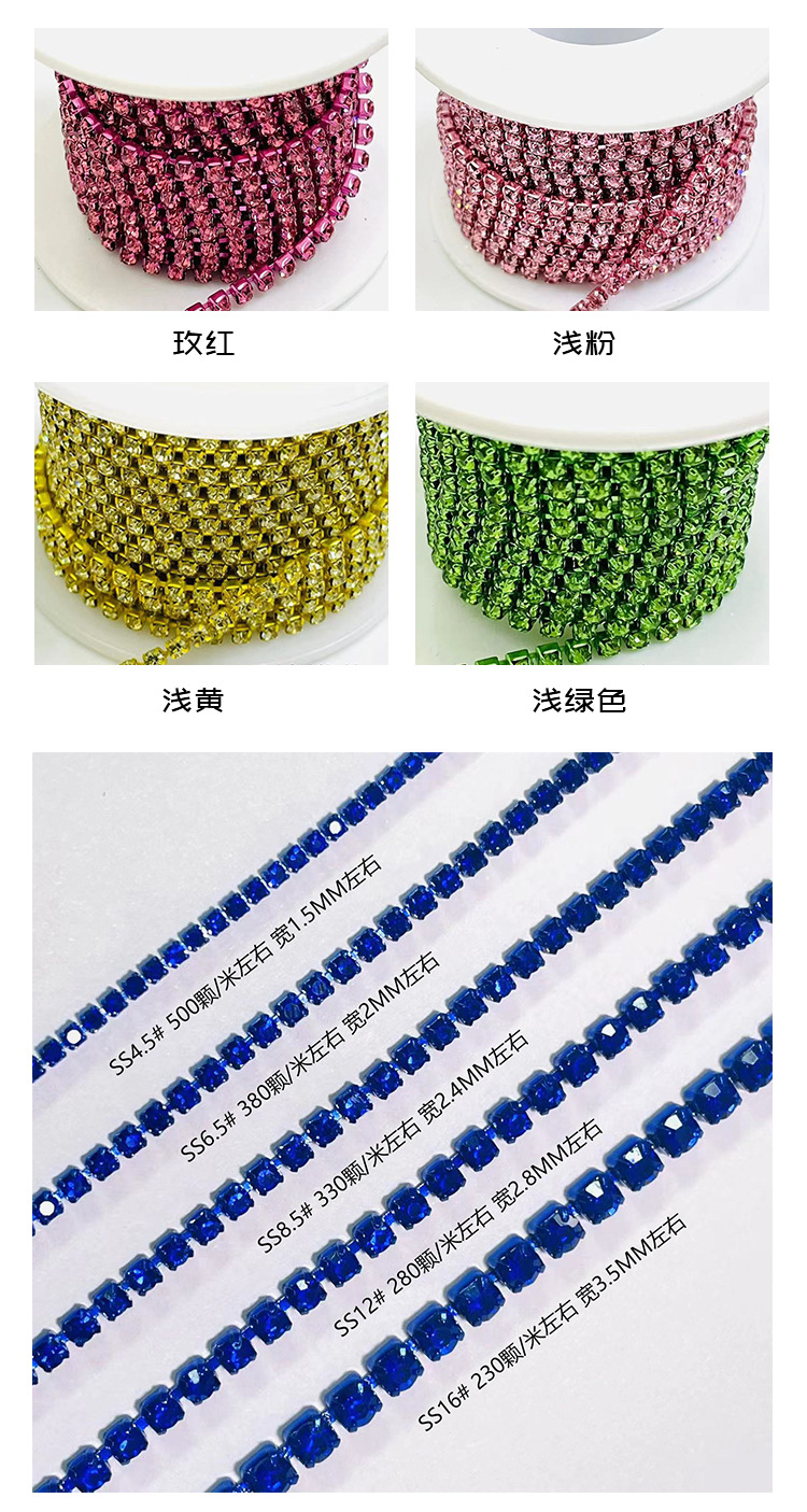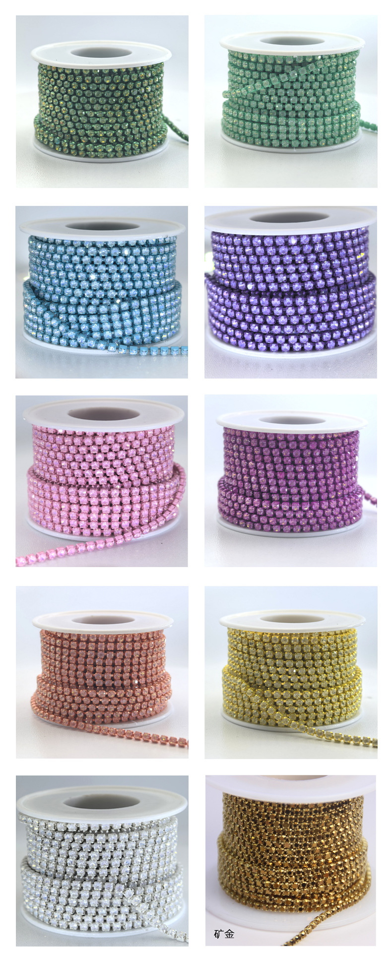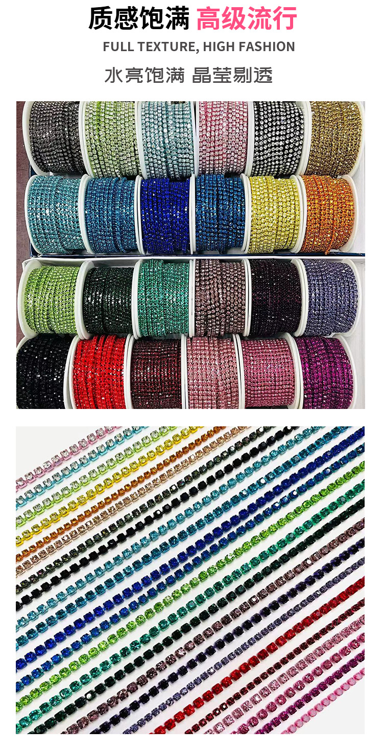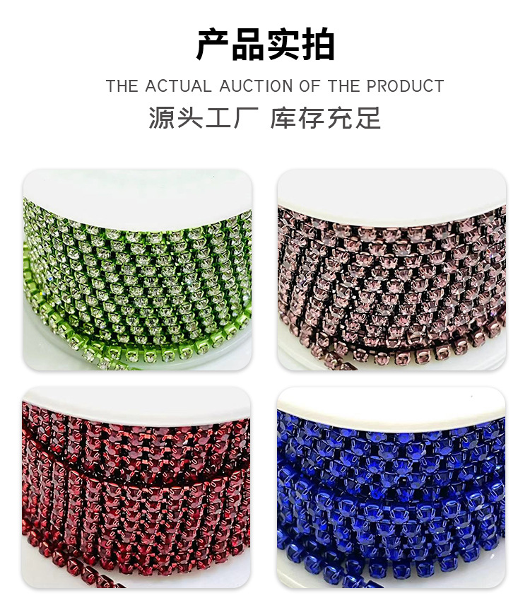 厂家源头彩色电泳爪链钻链玻璃水钻密链链条diy服饰饰品辅料配件