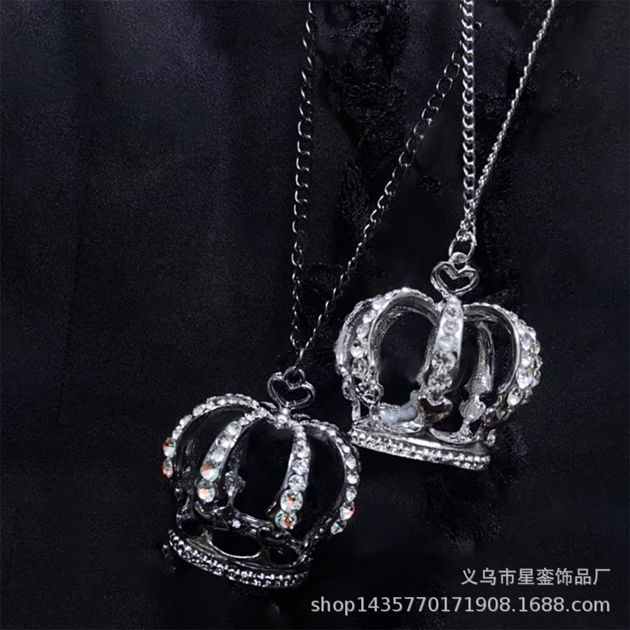 超大号满钻皇冠吊坠项链挂件衣饰夸张风格金属王冠女毛衣链