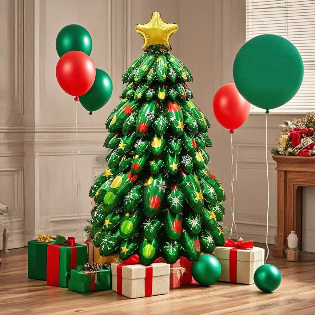 大号圣诞树气球充气堆堆立体柱圣诞树商场店铺圣诞节氛围装饰气球