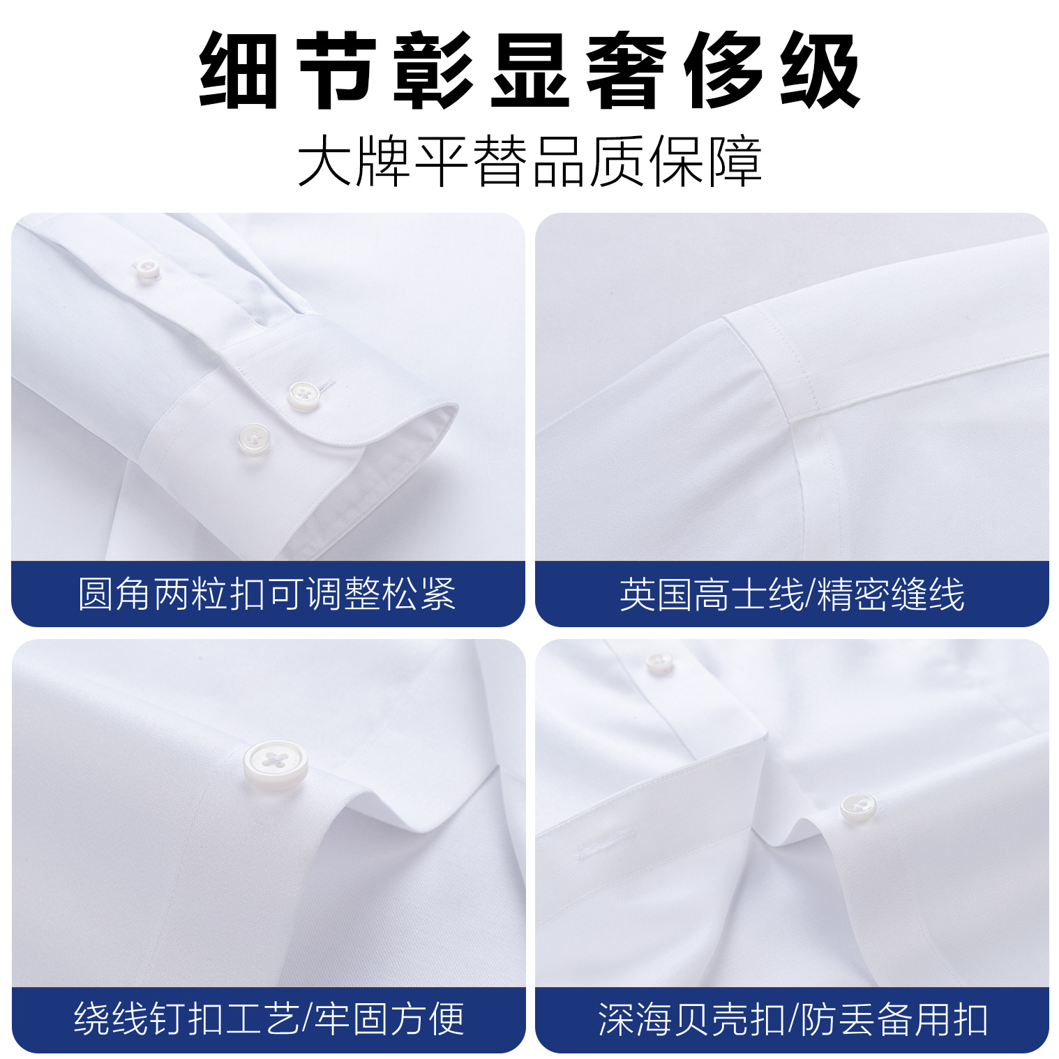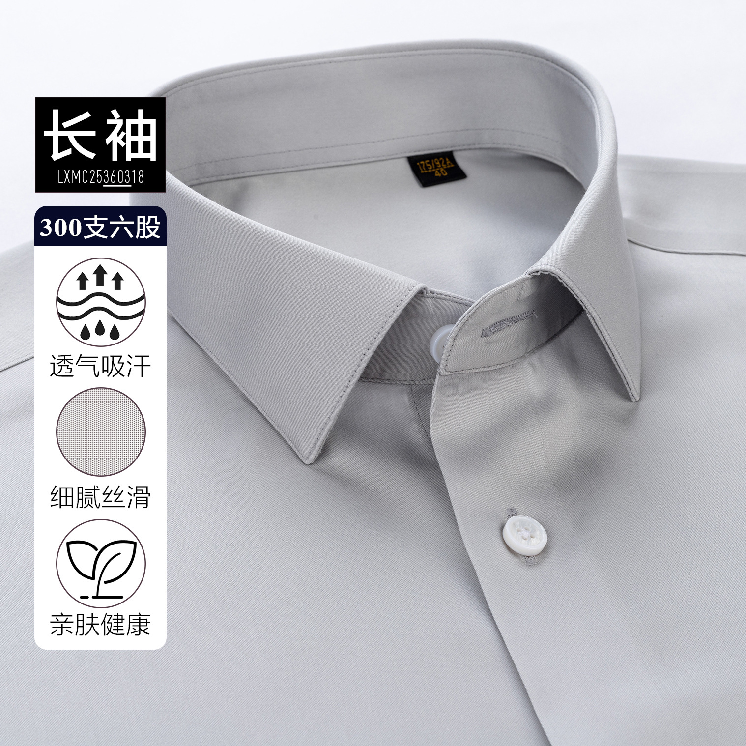 【奢侈级300支六股】全棉男士衬衫男DP免烫商务休闲衬衣白蓝灰色