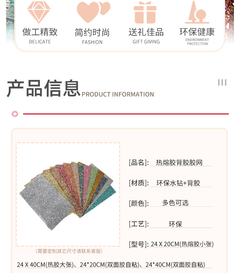 | 24x40cm (hot melt adhesive large sheets)(24 X 40CM(热熔胶大张)) | USD $2.5 | 99998 piece available |