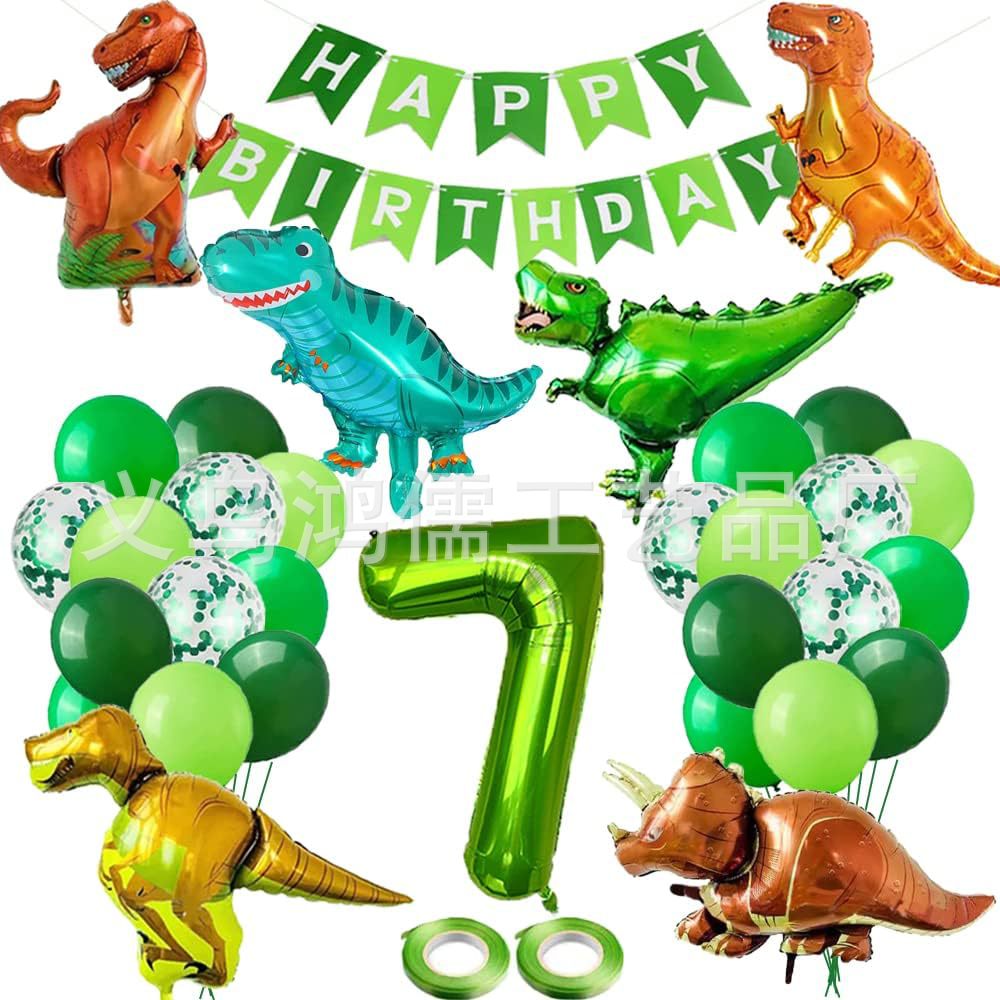跨境汽球侏罗纪恐龙1岁到9生日快乐派对气球场景布置背景装饰