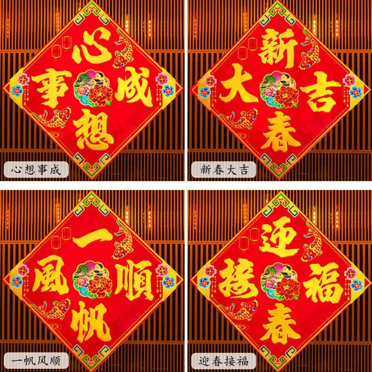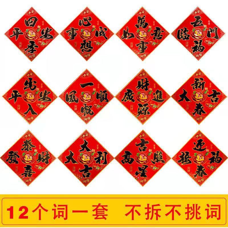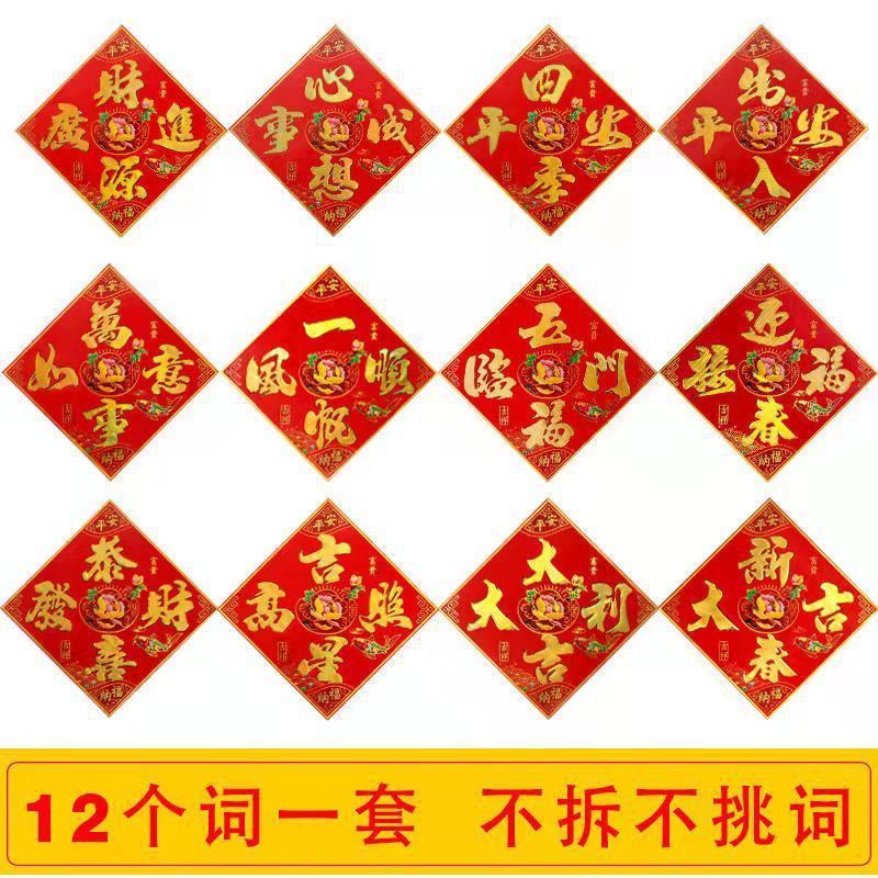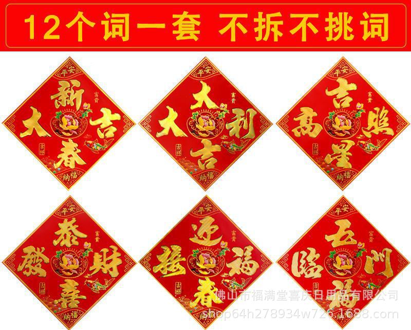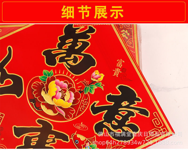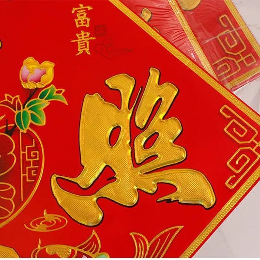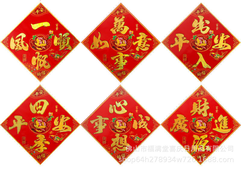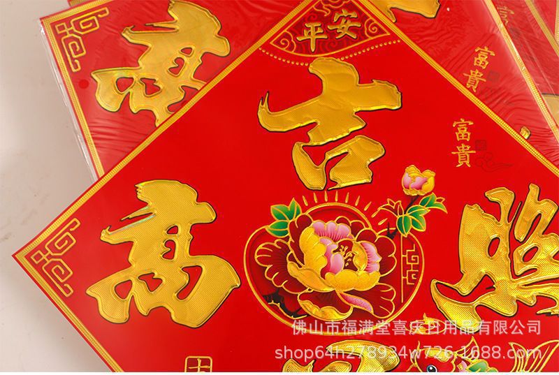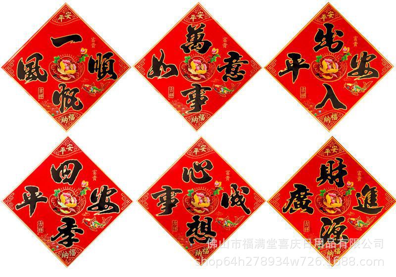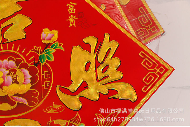 新年四字斗方耐晒门贴金字黑字烫金春节贴画福字贴门年画厂家直销