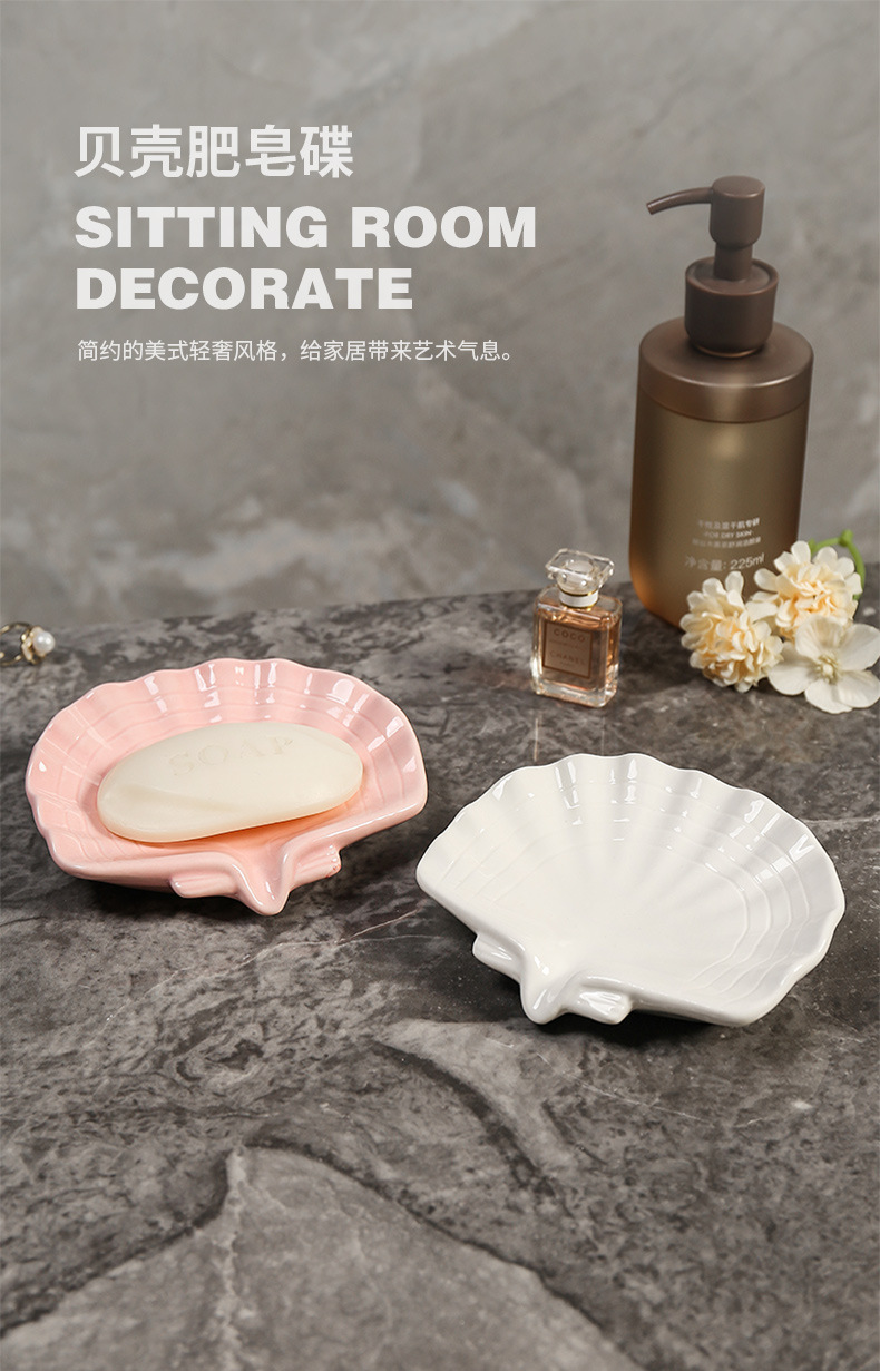 贝壳皂盒新款陶瓷工艺品家用新款创意装饰卫生间办公室可爱香皂盒