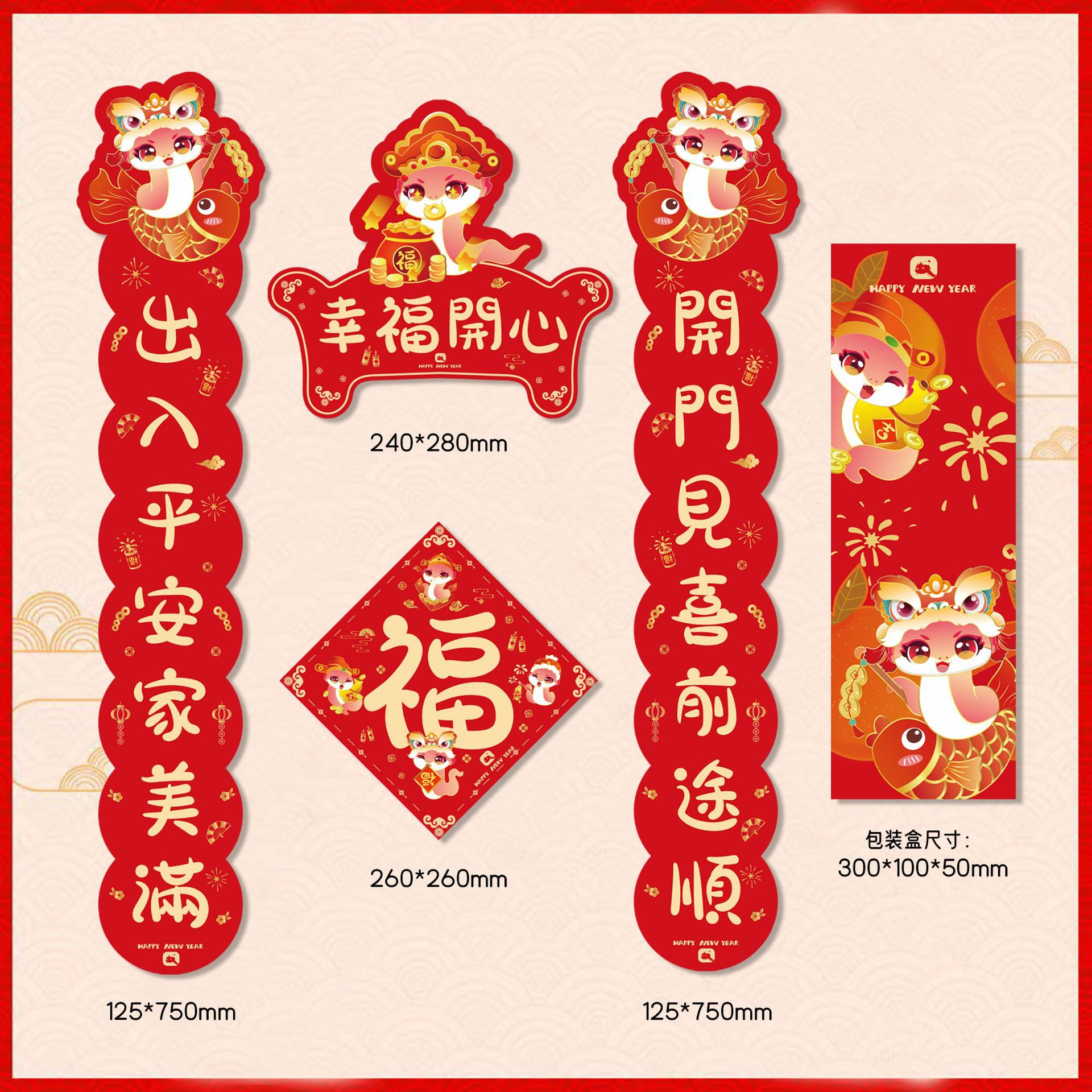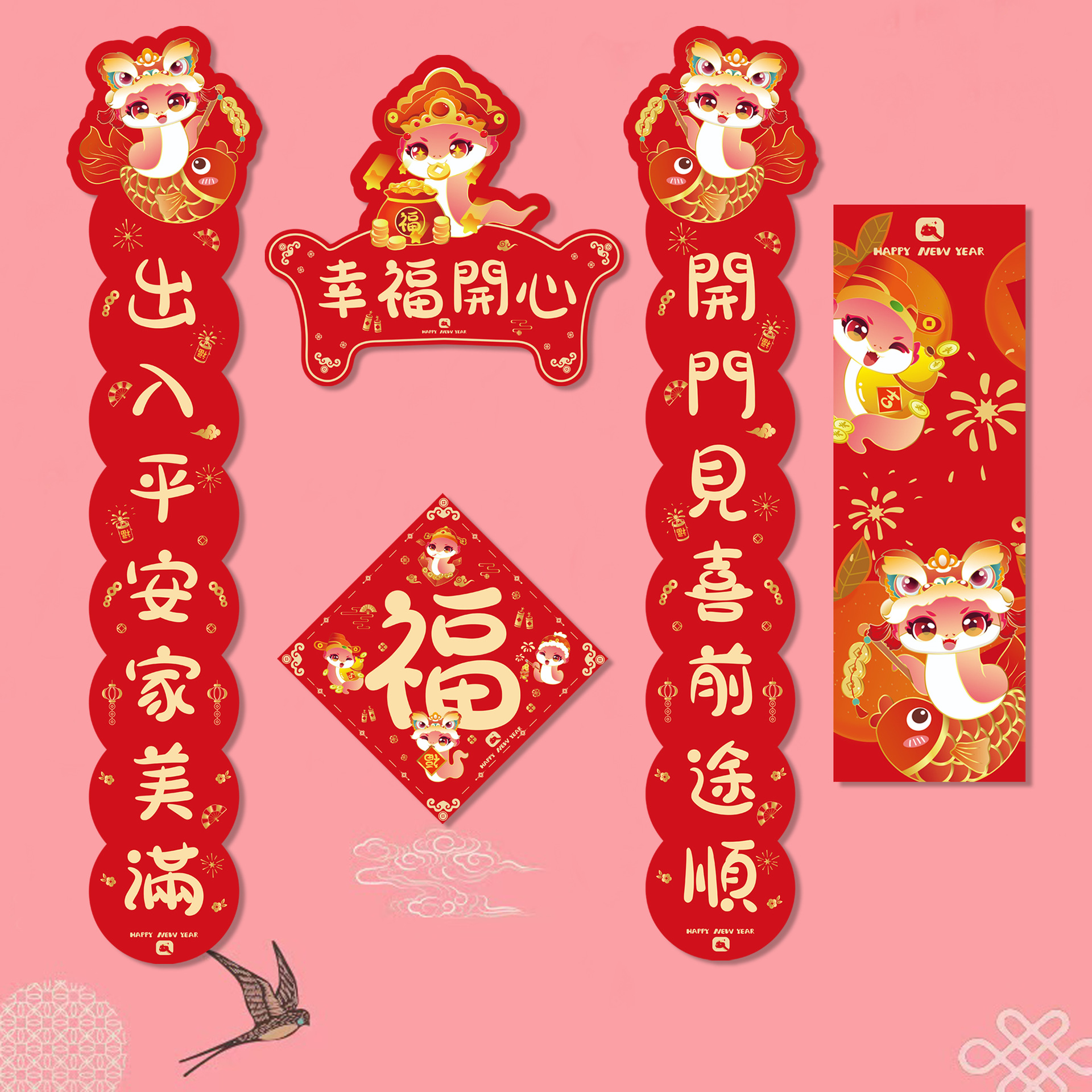 2026马年对联春节可爱卡通春联过新年异形室内小门贴纸批发门幅75
