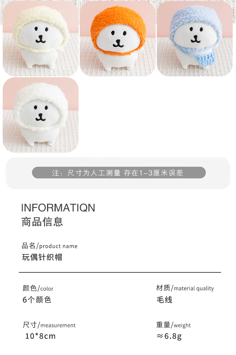 10cm娃衣自嘲熊头套公仔毛绒棉花娃娃手工钩织小帽子配饰玩偶换装