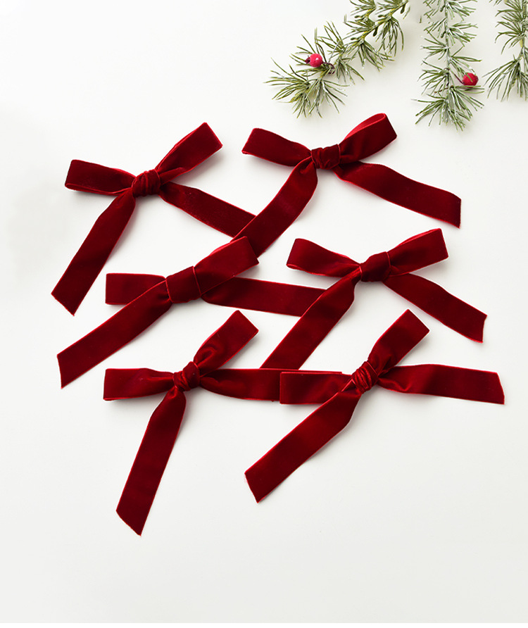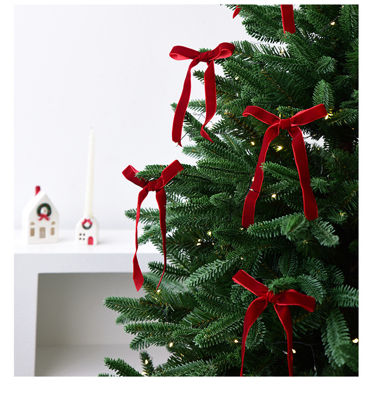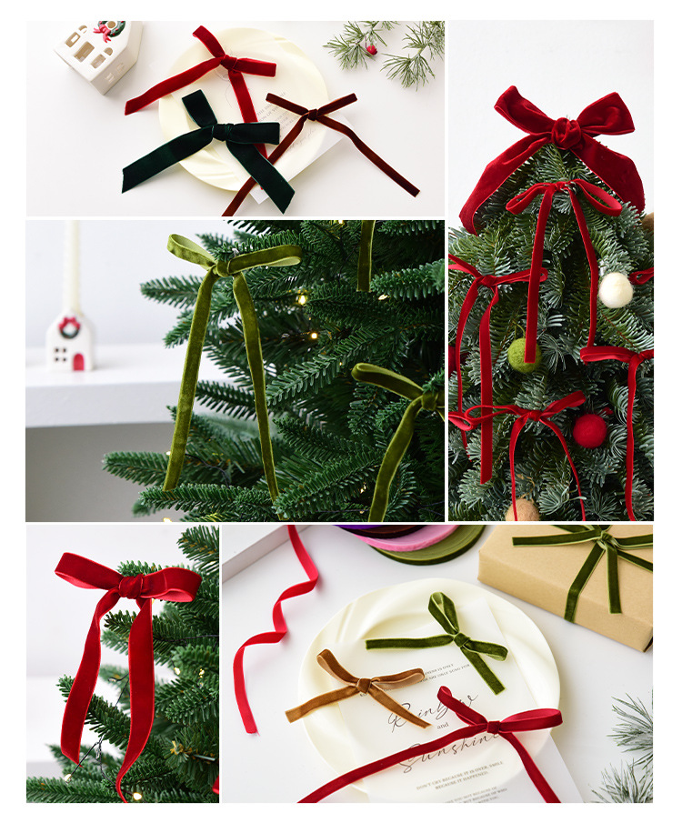 跨境圣诞装饰手工diy迷你天鹅绒蝴蝶结丝带圣诞树挂件圣诞节装饰