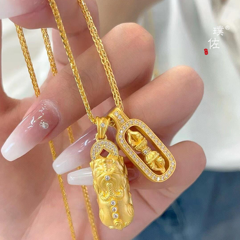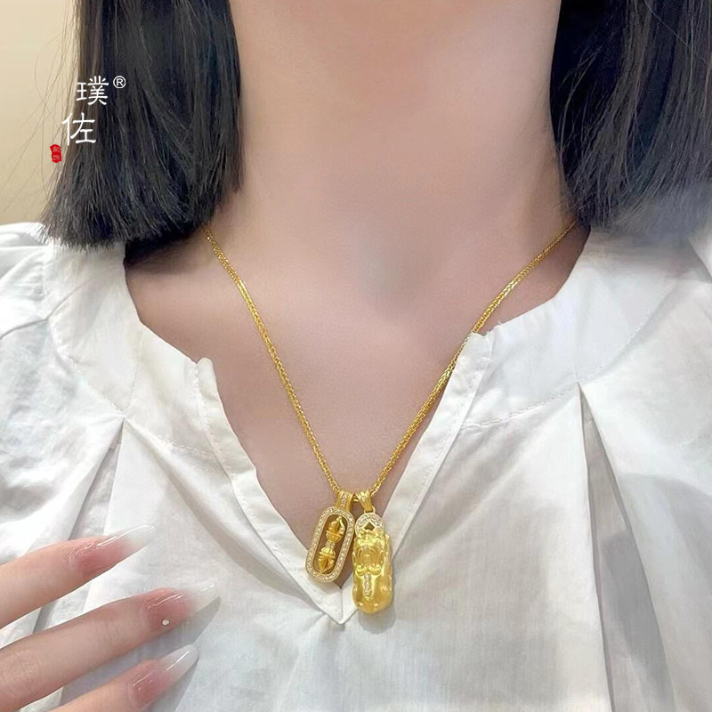 霖儿同款铜镀黄金项链貔貅金刚杵镶钻吊坠叠戴轻奢锁骨链送女友