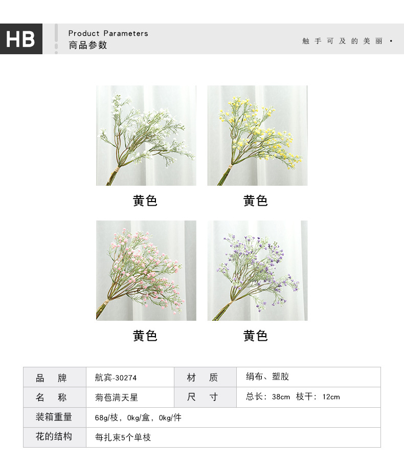 航宾ins风仿真扎束满天星 客厅酒店装饰摆件婚礼摄影假花道具批发