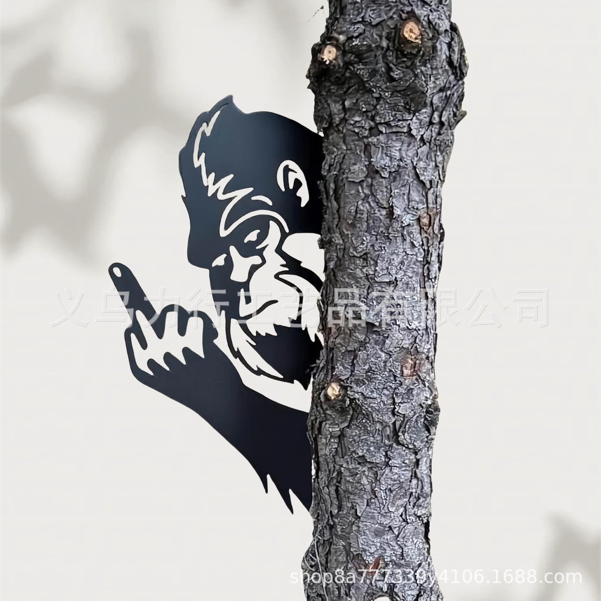 跨境爆款铁艺猩猩动物剪影墙面艺术户外花园装饰品雕像金属工艺品