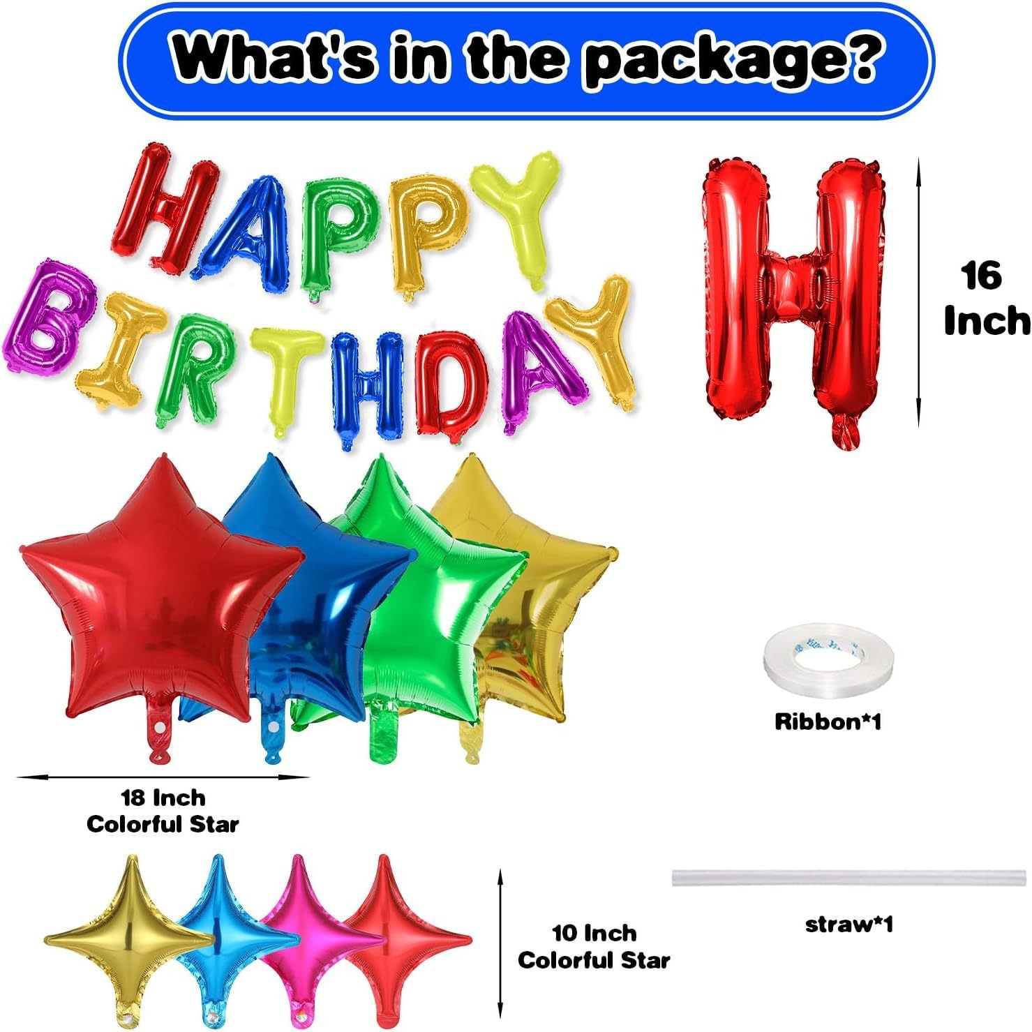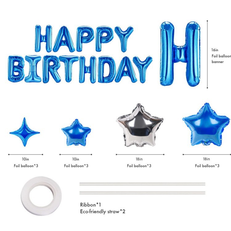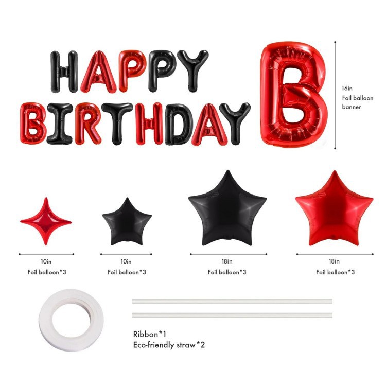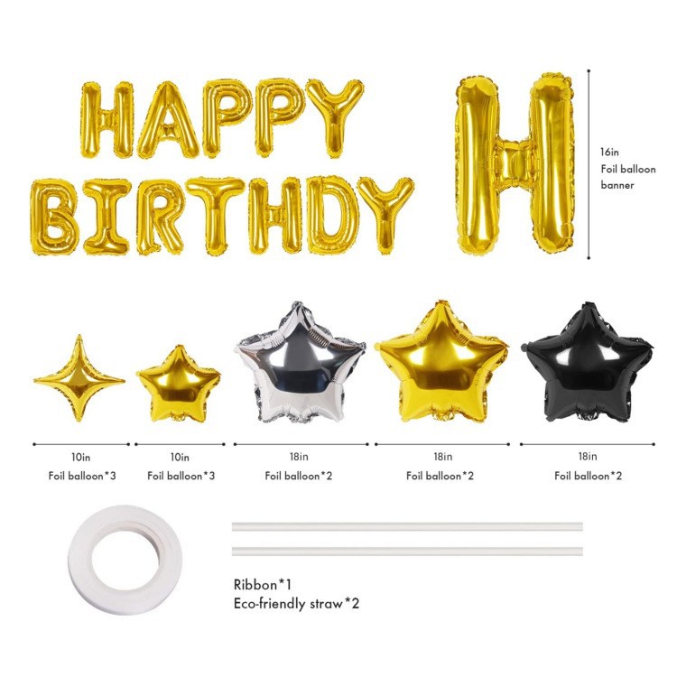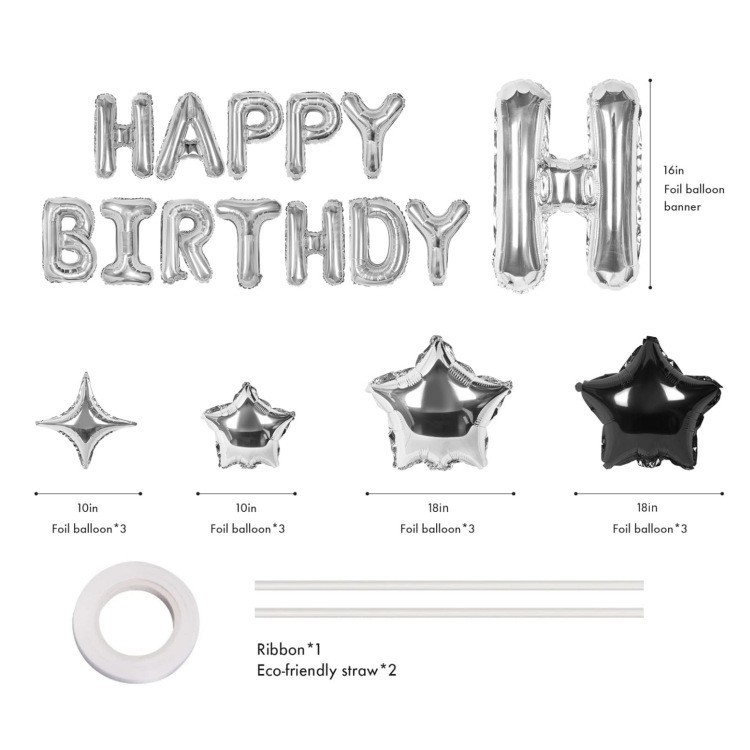 生日快乐横幅铝箔字母带星星气球生日派对生日布置套装装饰用品