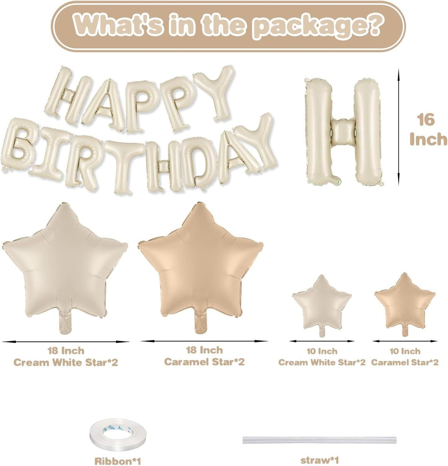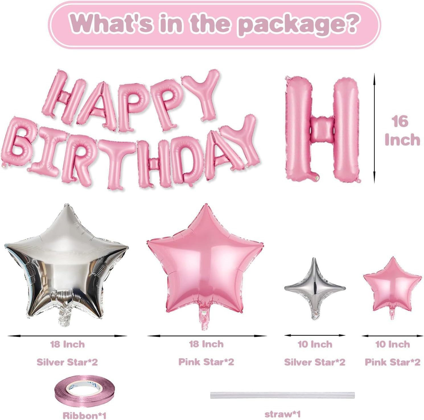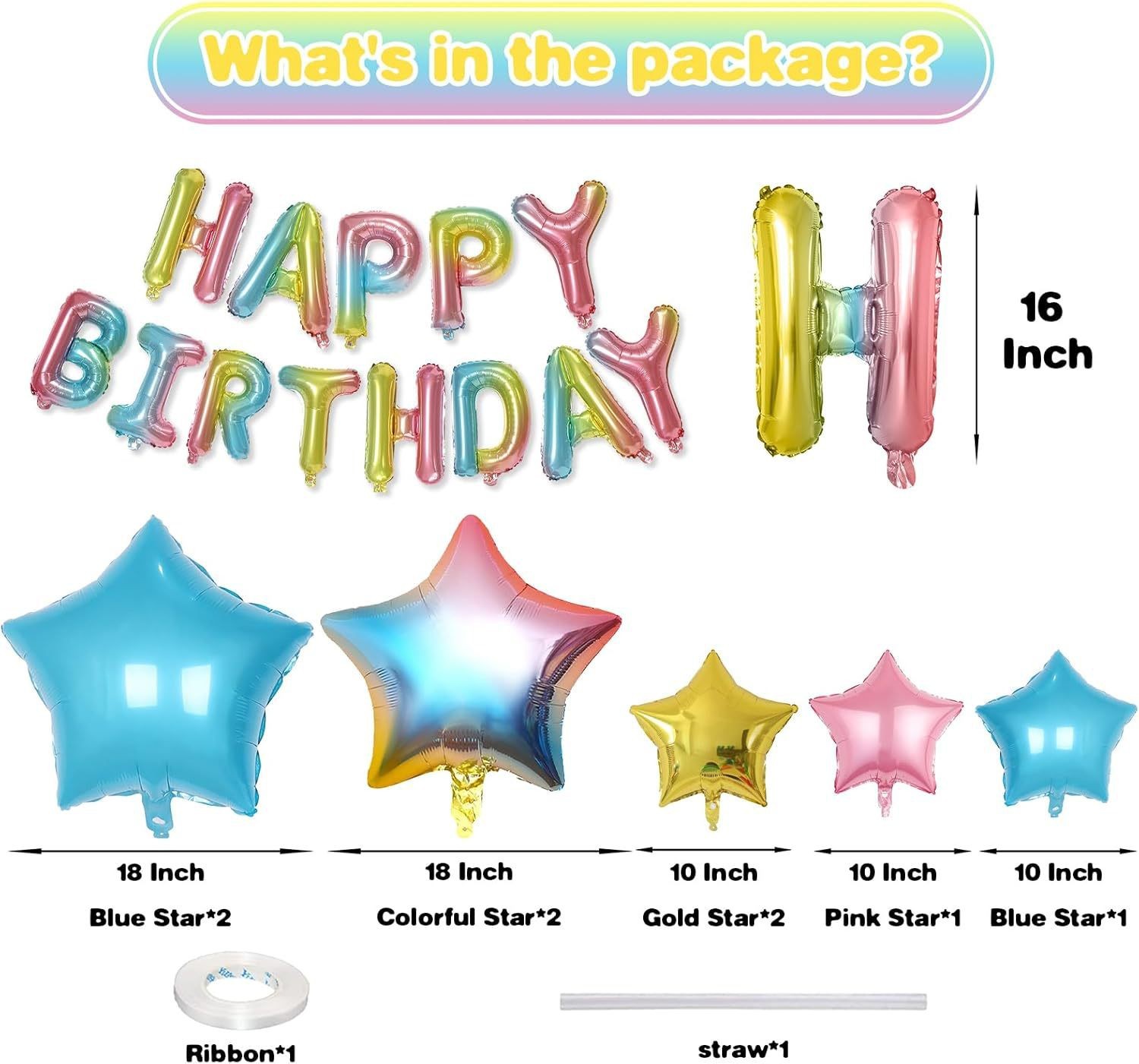 生日快乐横幅铝箔字母带星星气球生日派对生日布置套装装饰用品