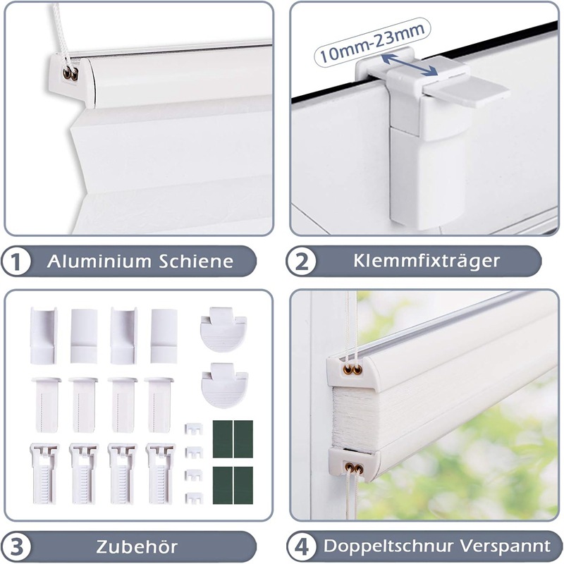 30~80/100CM(白色/黄色/灰色)防水遮光百折帘 免打孔无拉绳百褶帘