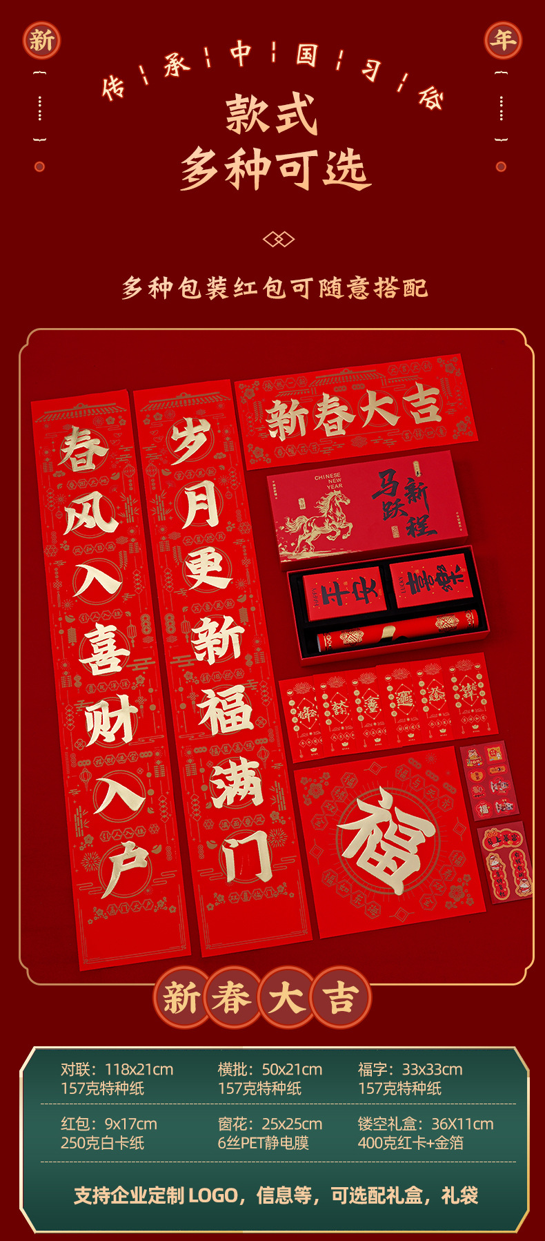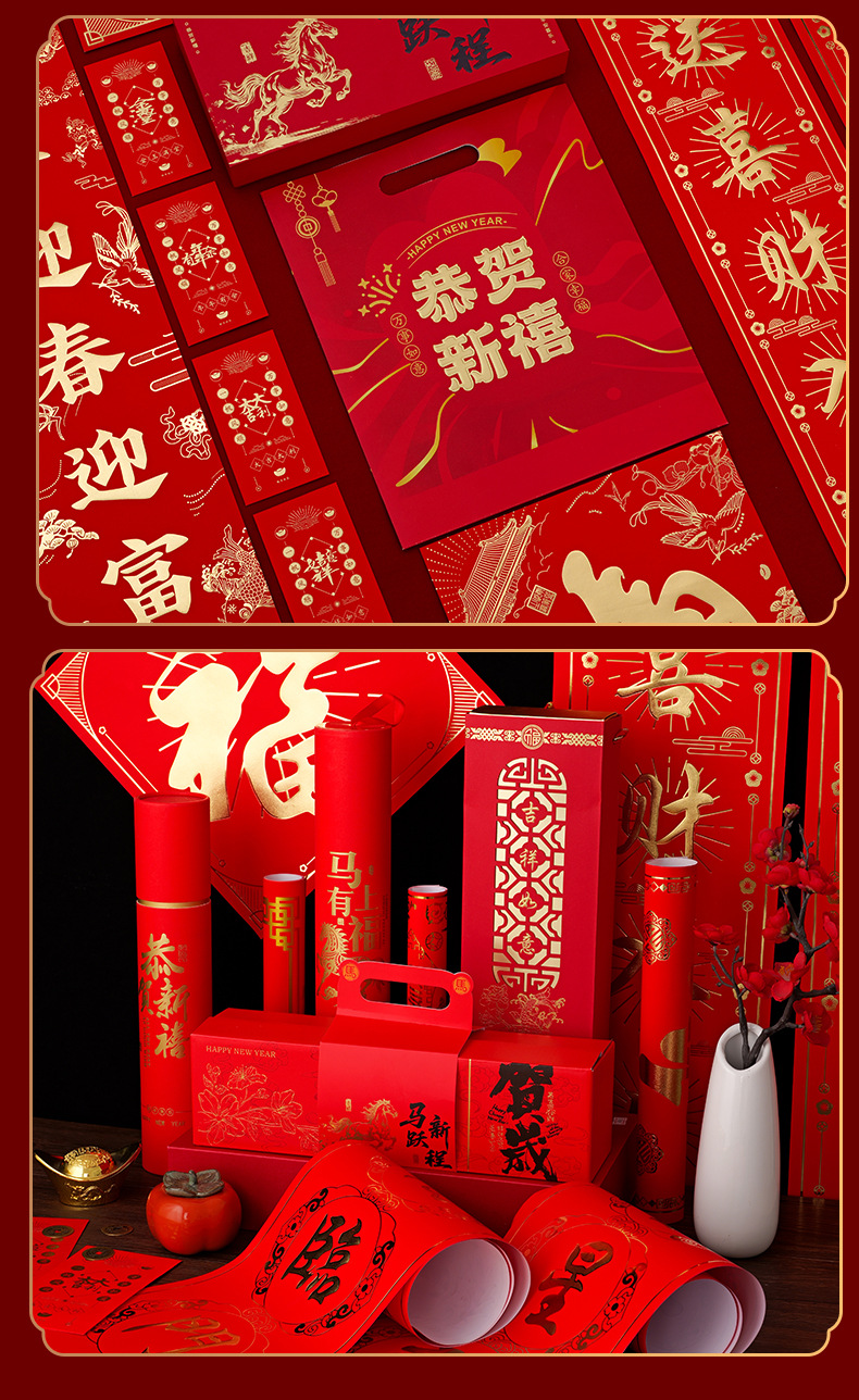 2026马年广告对联定制礼盒专版植绒春联定做烫金福字大礼包印LOGO