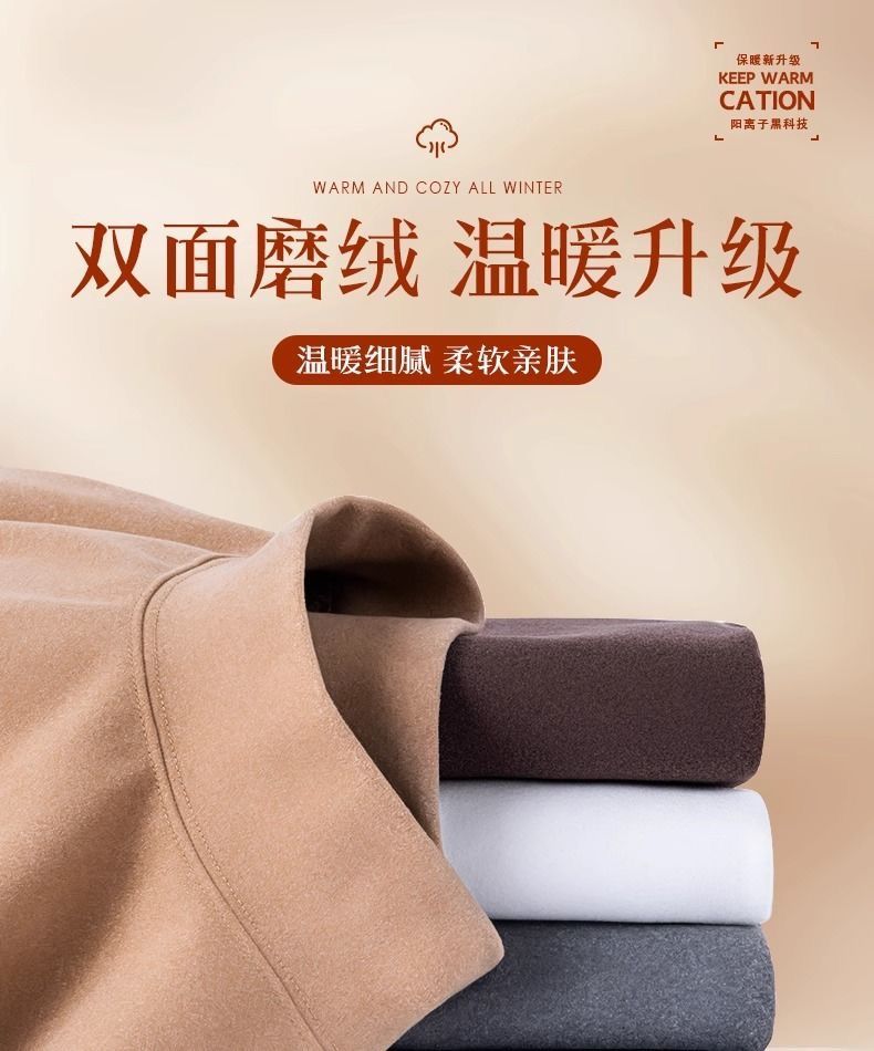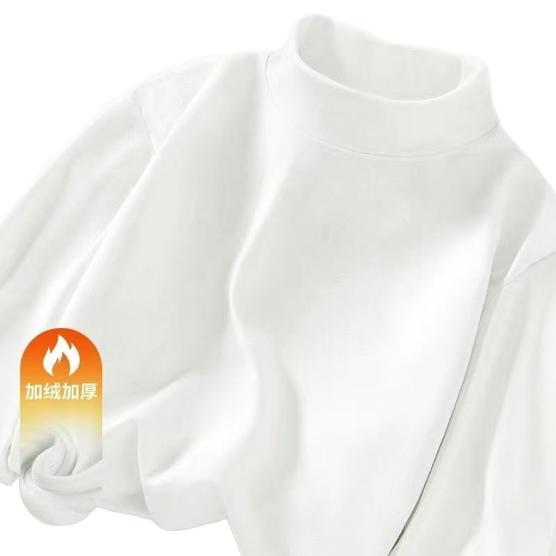 长袖男秋冬季双面绒毛保暖半高领打底衫宽松上衣大码内搭t恤长袖