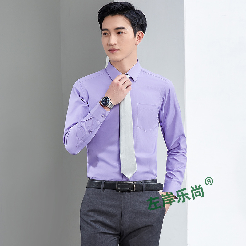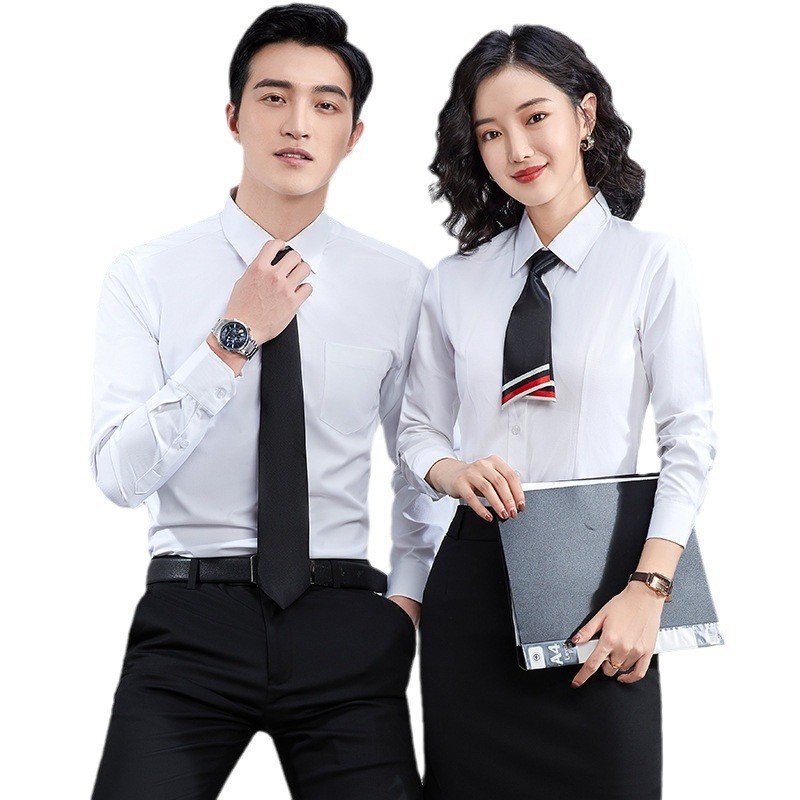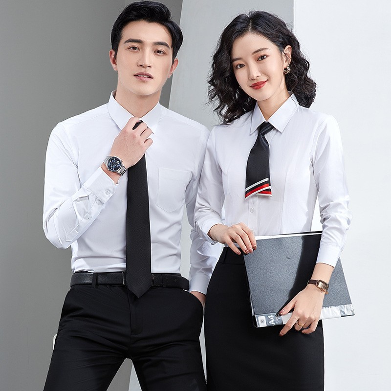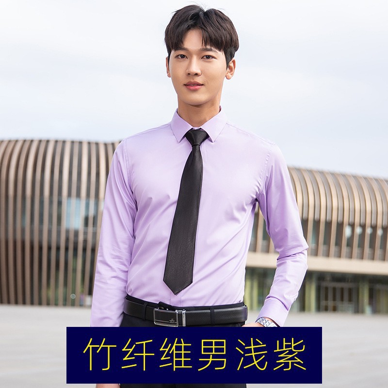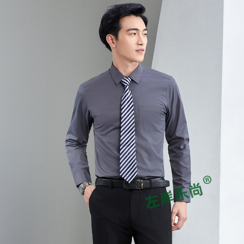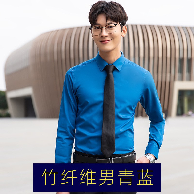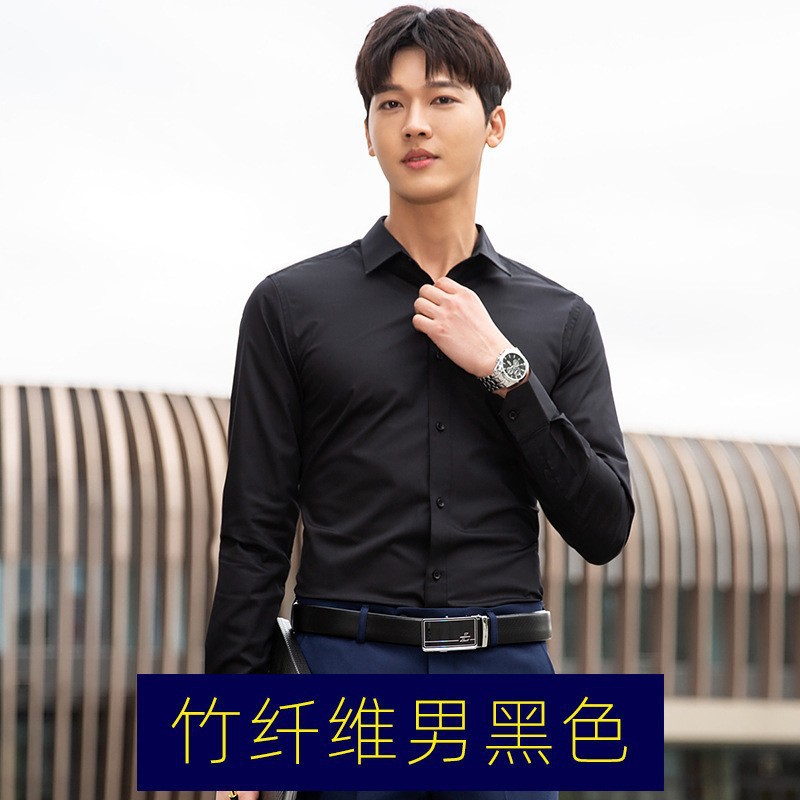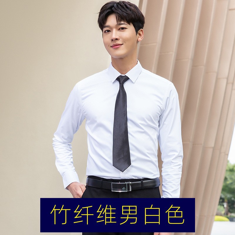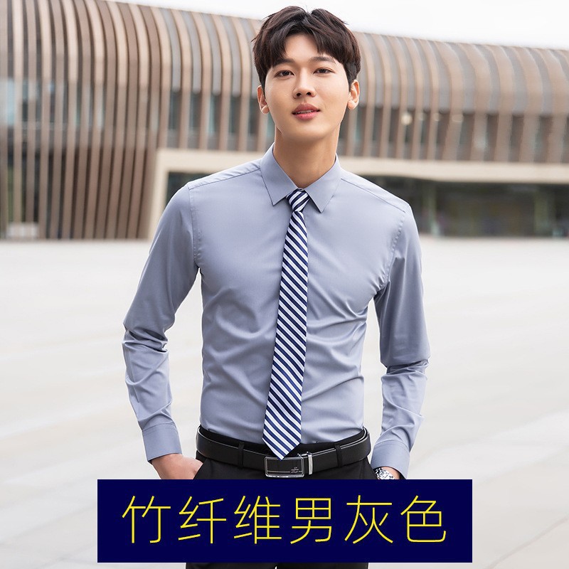 高档免烫白色长袖男士衬衫职业男衬衣蓝色灰色商务修身黑色工作服