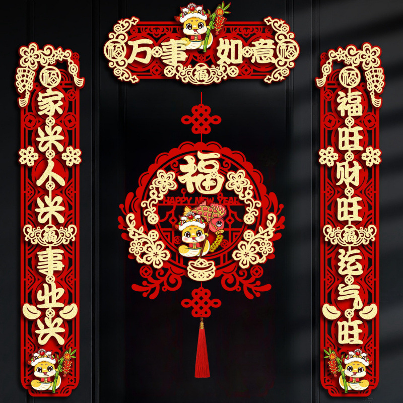 2025年对联生肖新款春节家用门装饰新年磁吸款加厚植绒烫金春联