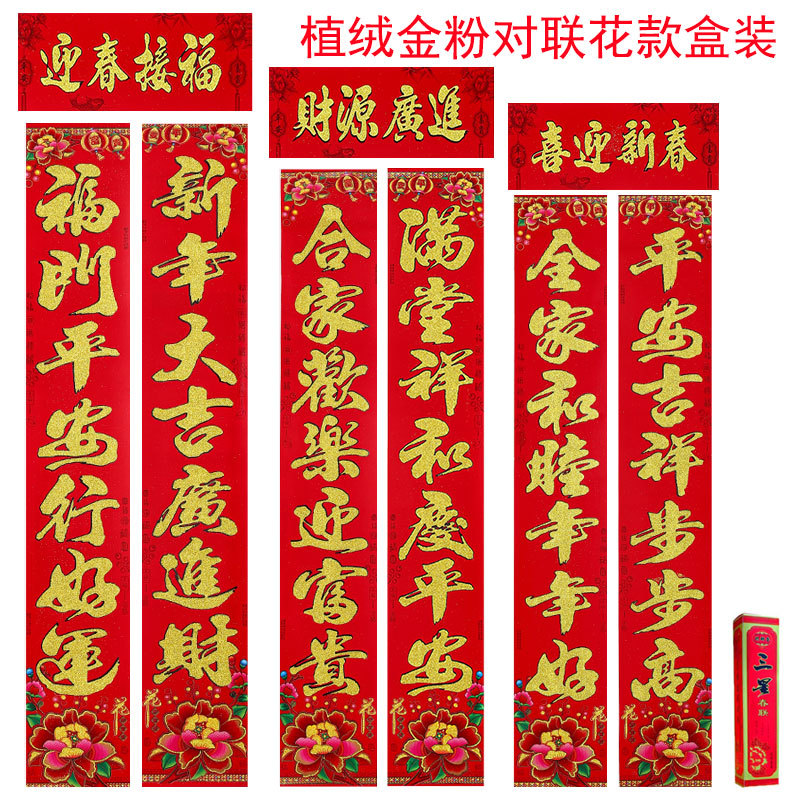 对联批发2026马年铜版纸烫金春节对联盒装植绒春联地摊批货厂家