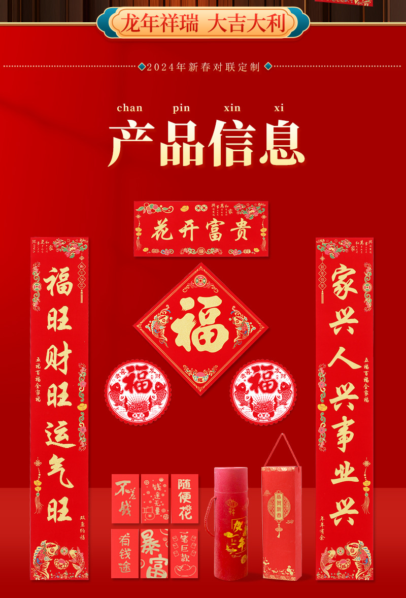 2026年创意对联红包窗花对联礼盒装新年大礼包烫金彩印马年春联