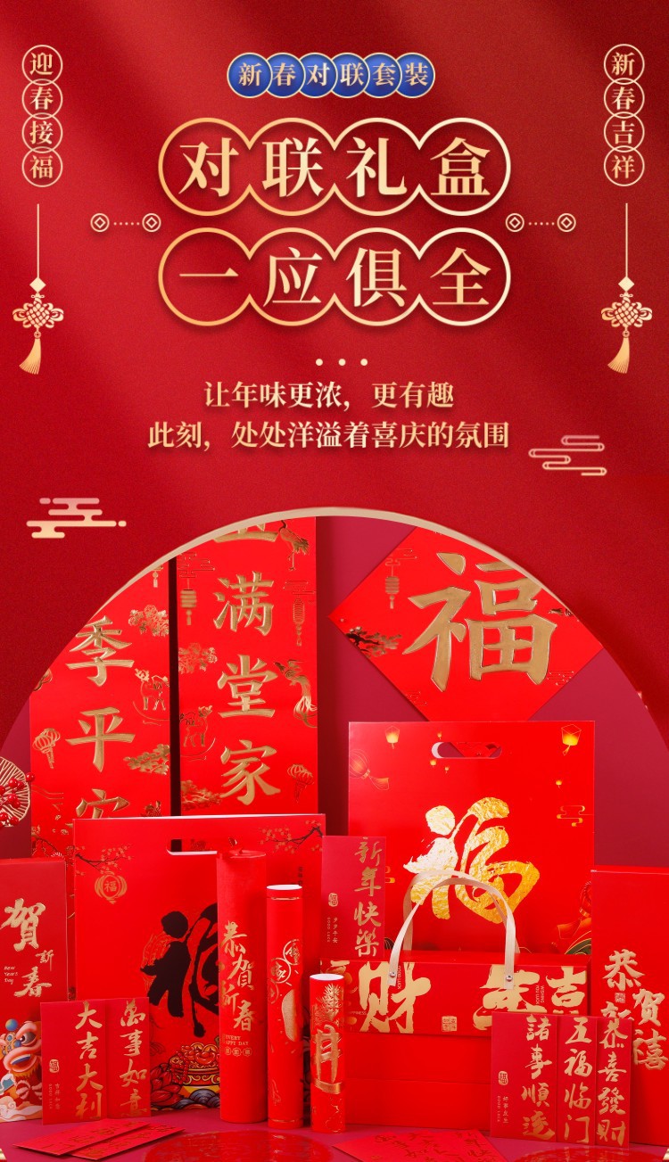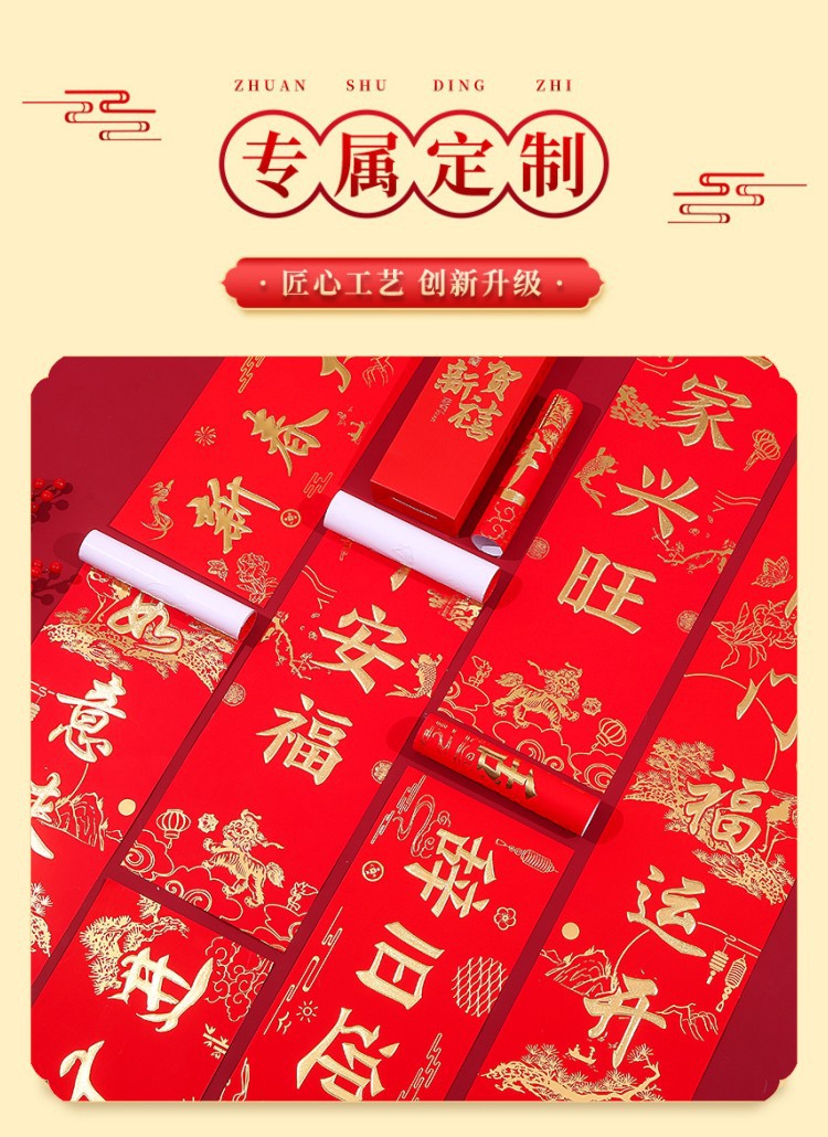 蛇年广告对联定制高档植绒礼盒烫金春联定做银行企业福字印logo