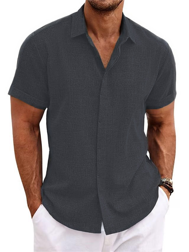 男装亚麻短袖T恤宽松汗衫纯色短袖棉麻衬衫男 沙滩大码男短袖衬衫