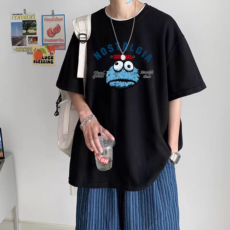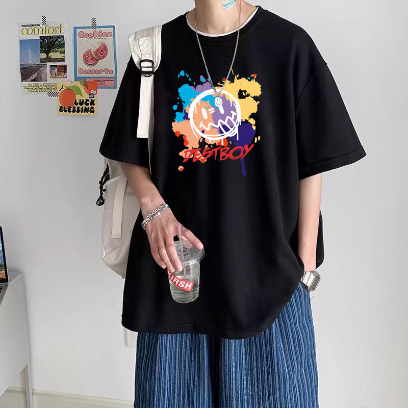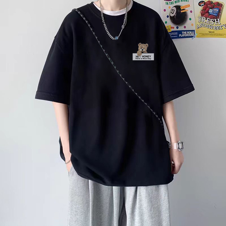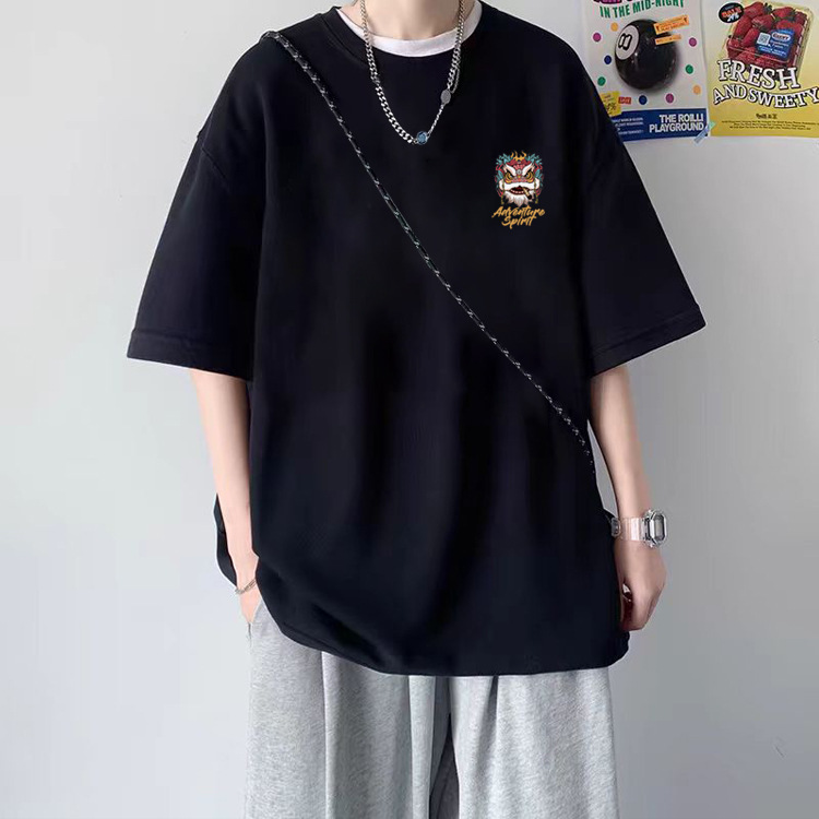 港风短袖男装纯棉打底衫t恤潮牌潮流2025新款宽松青少年半袖夏季