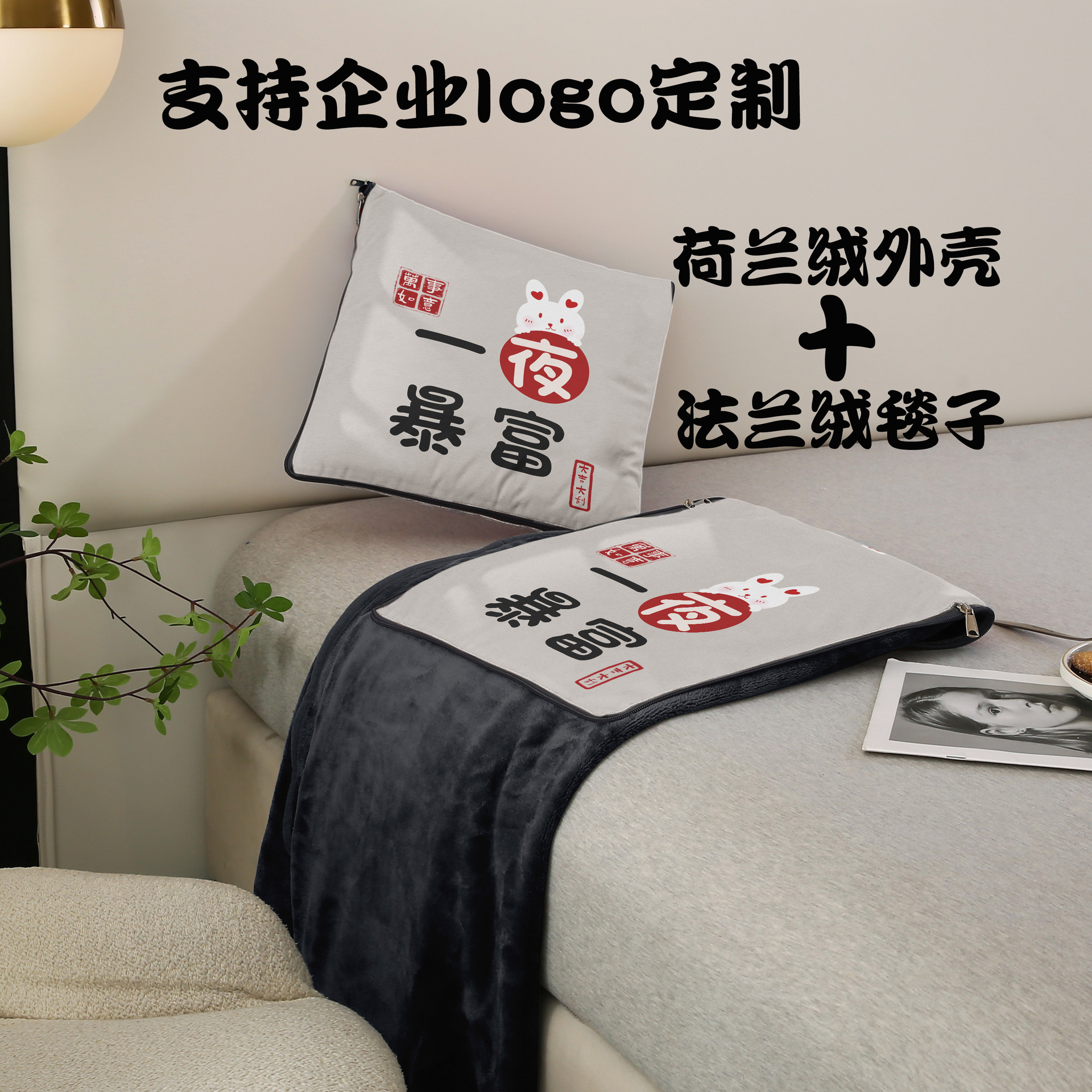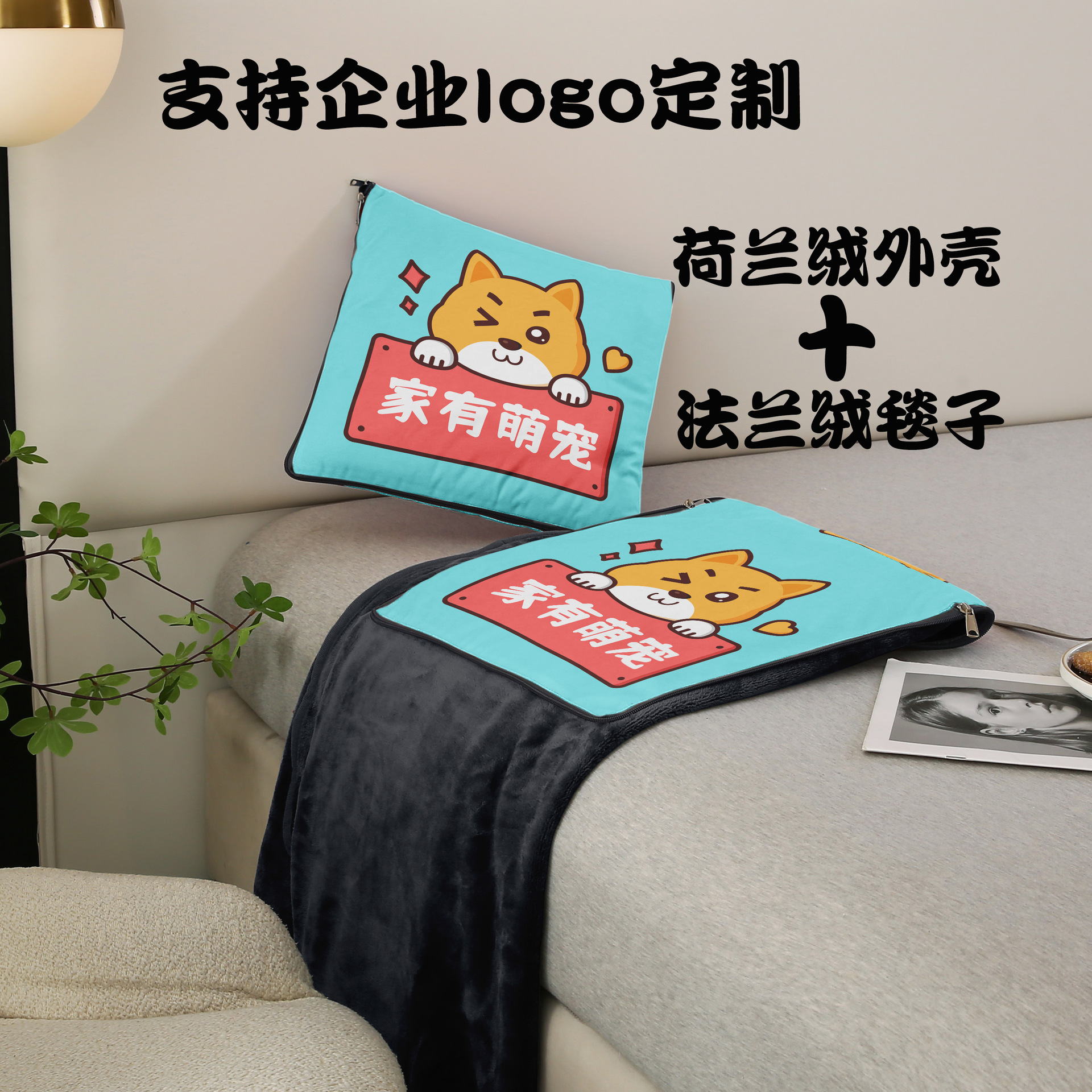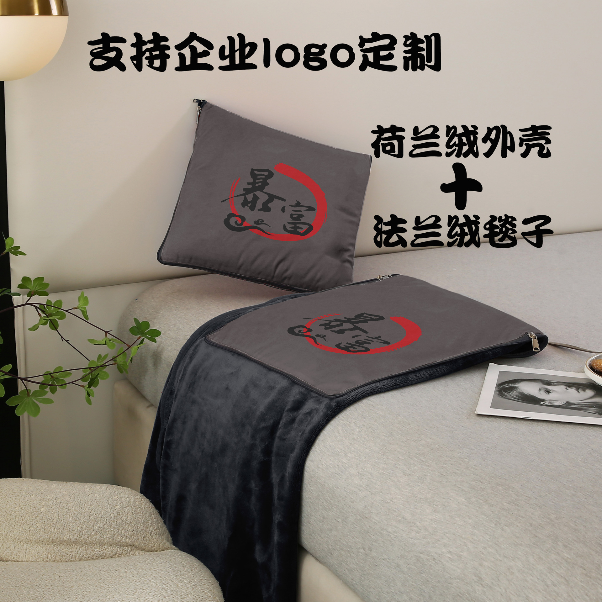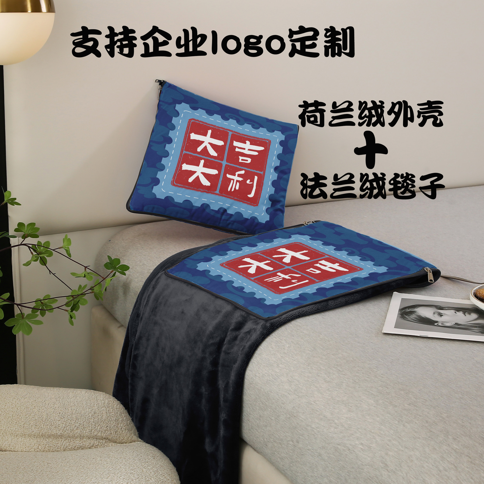 企业logo定制法兰绒抱枕毯子礼品抱枕 多功能 抱枕被子两用二合一