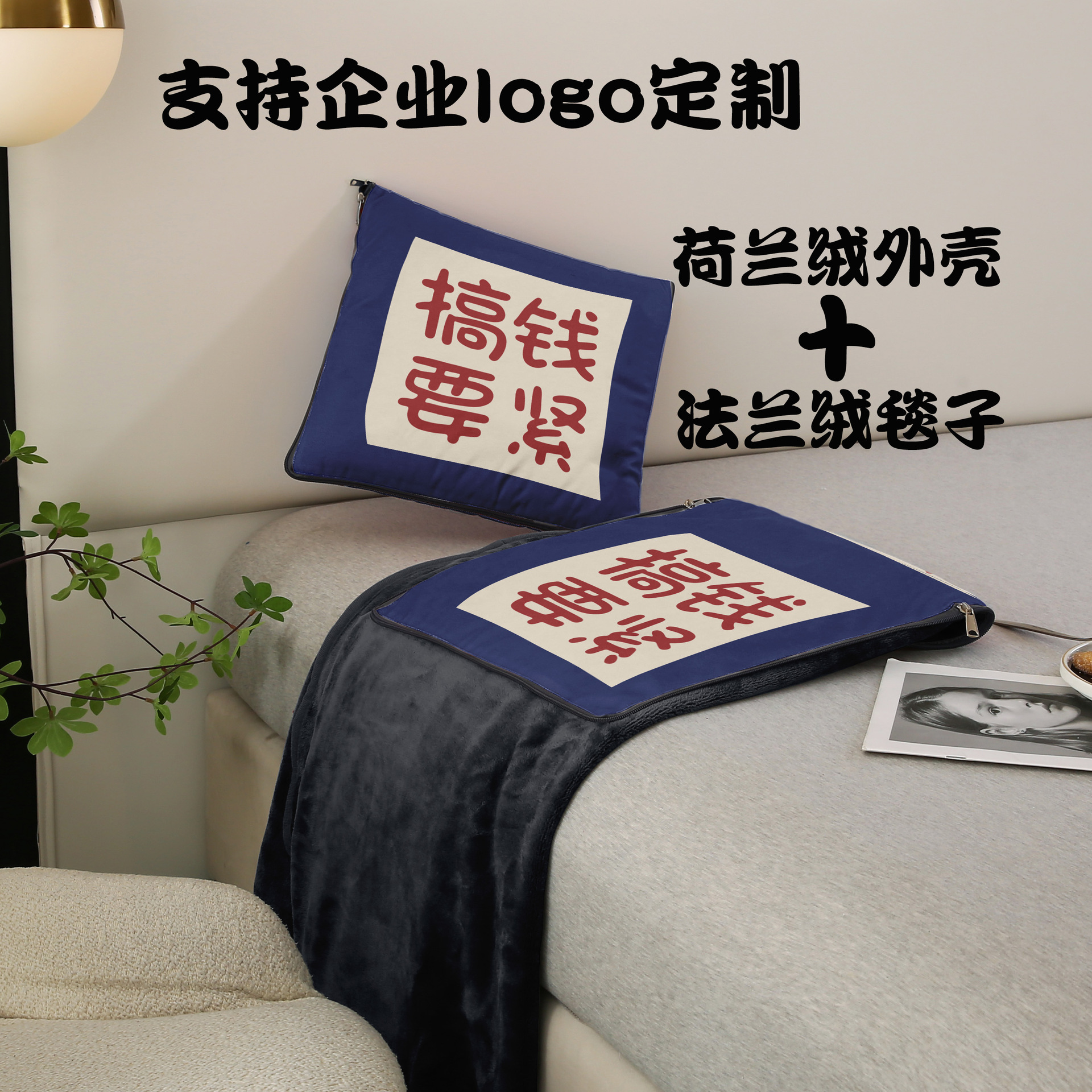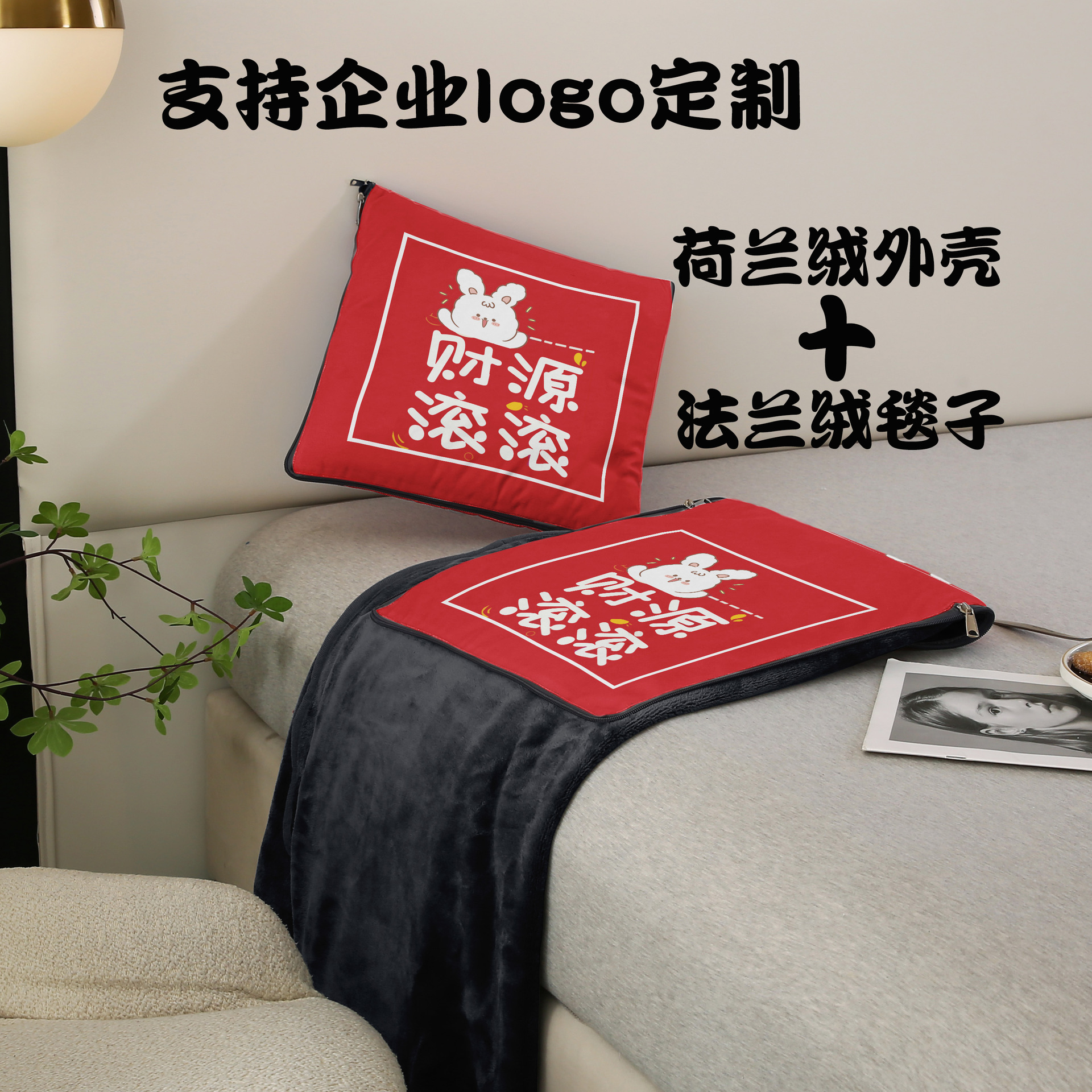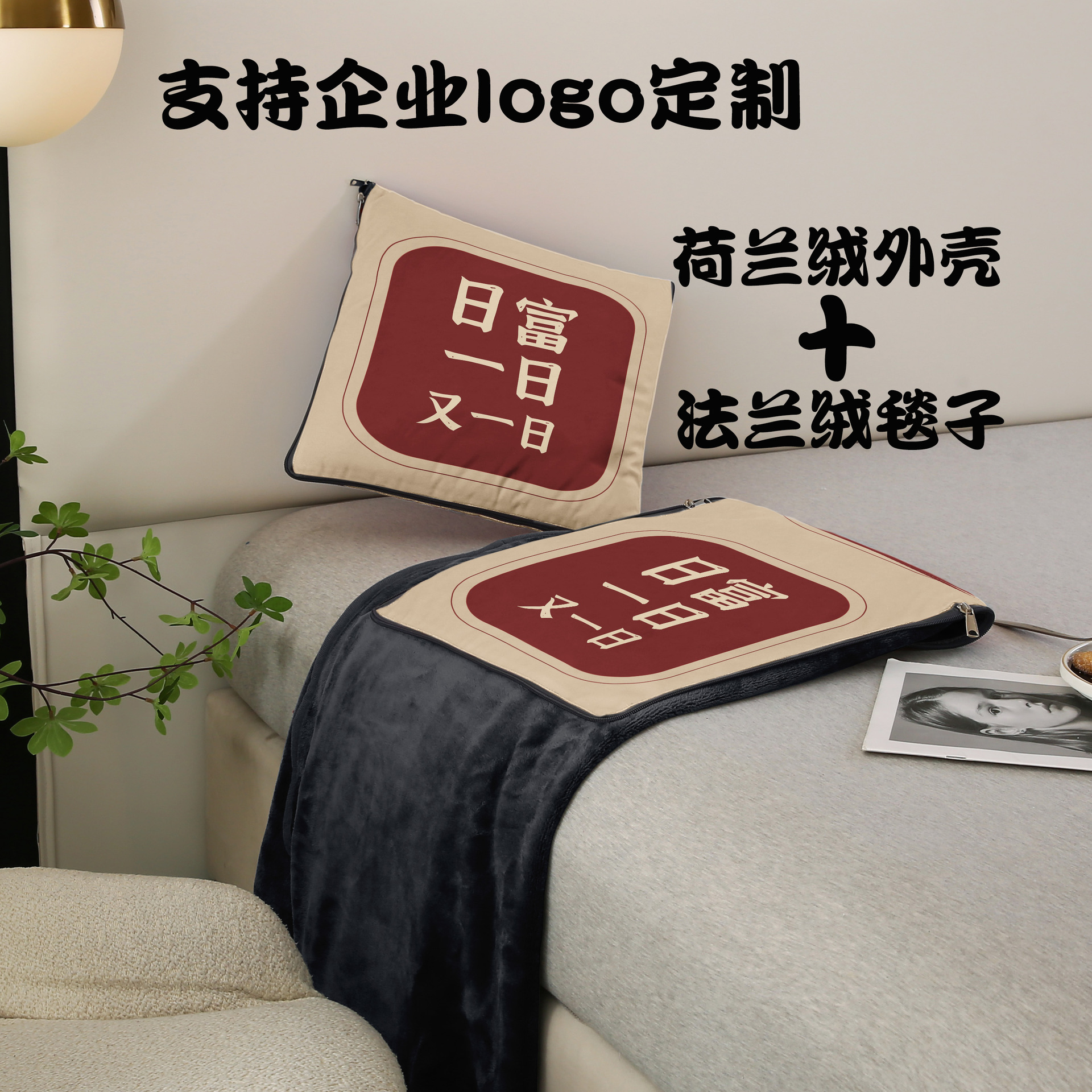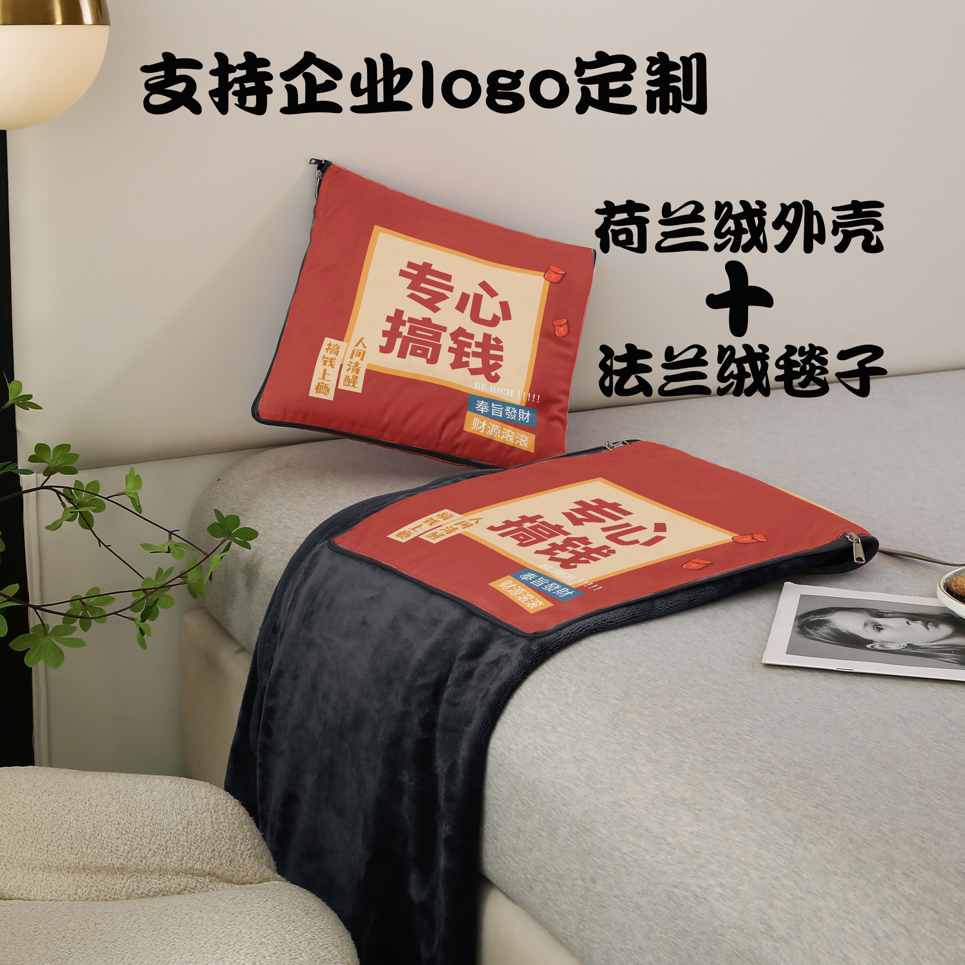 企业logo定制法兰绒抱枕毯子礼品抱枕 多功能 抱枕被子两用二合一