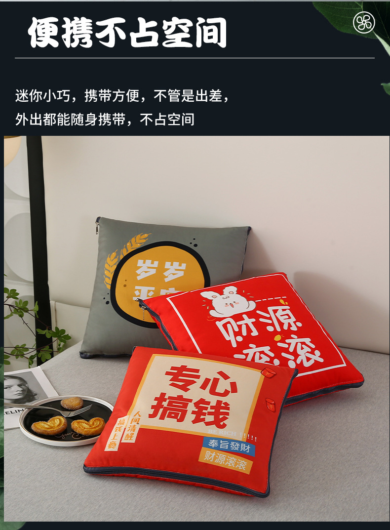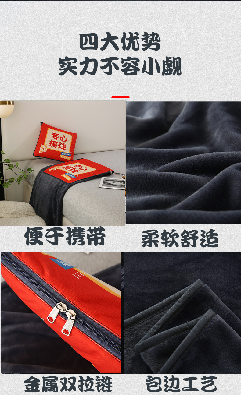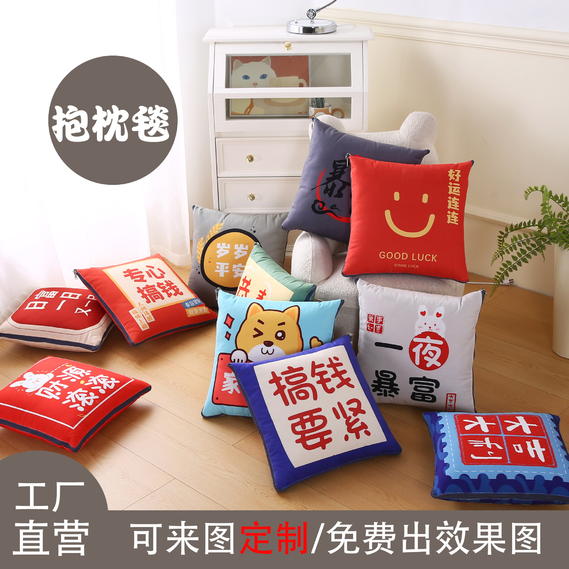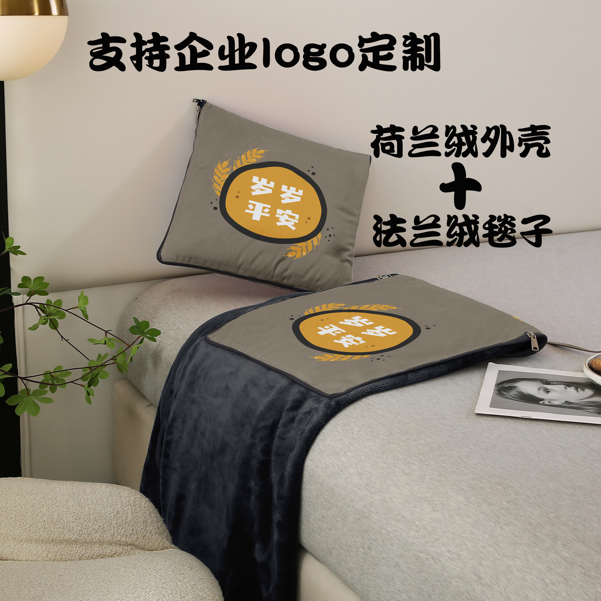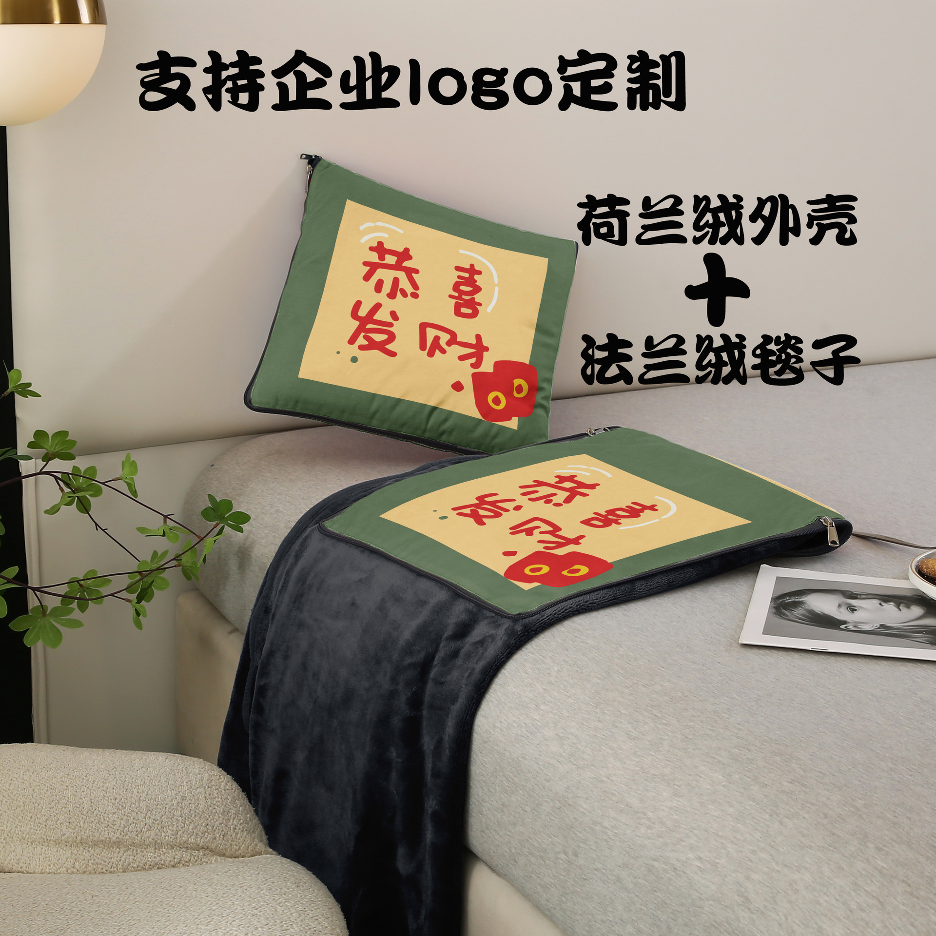 企业logo定制法兰绒抱枕毯子礼品抱枕 多功能 抱枕被子两用二合一