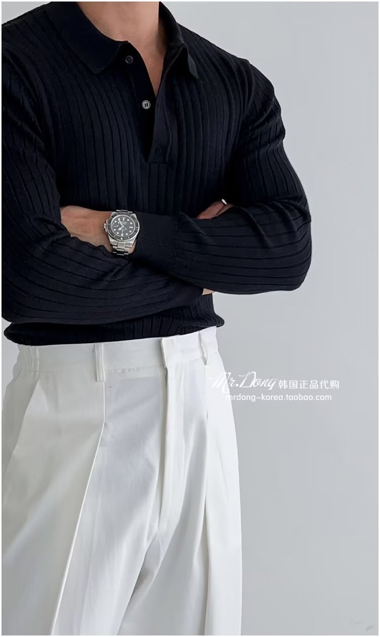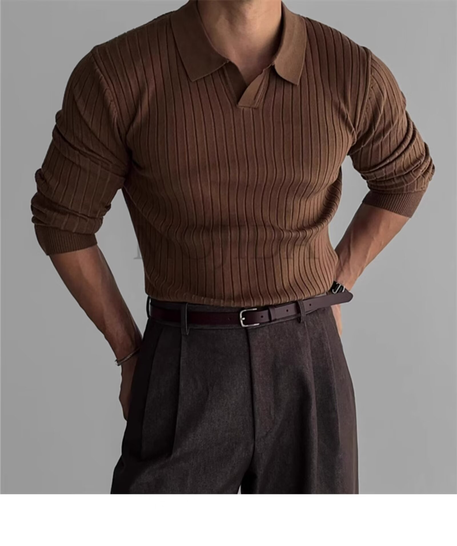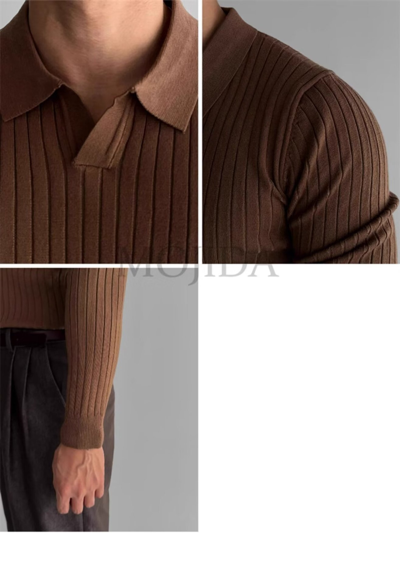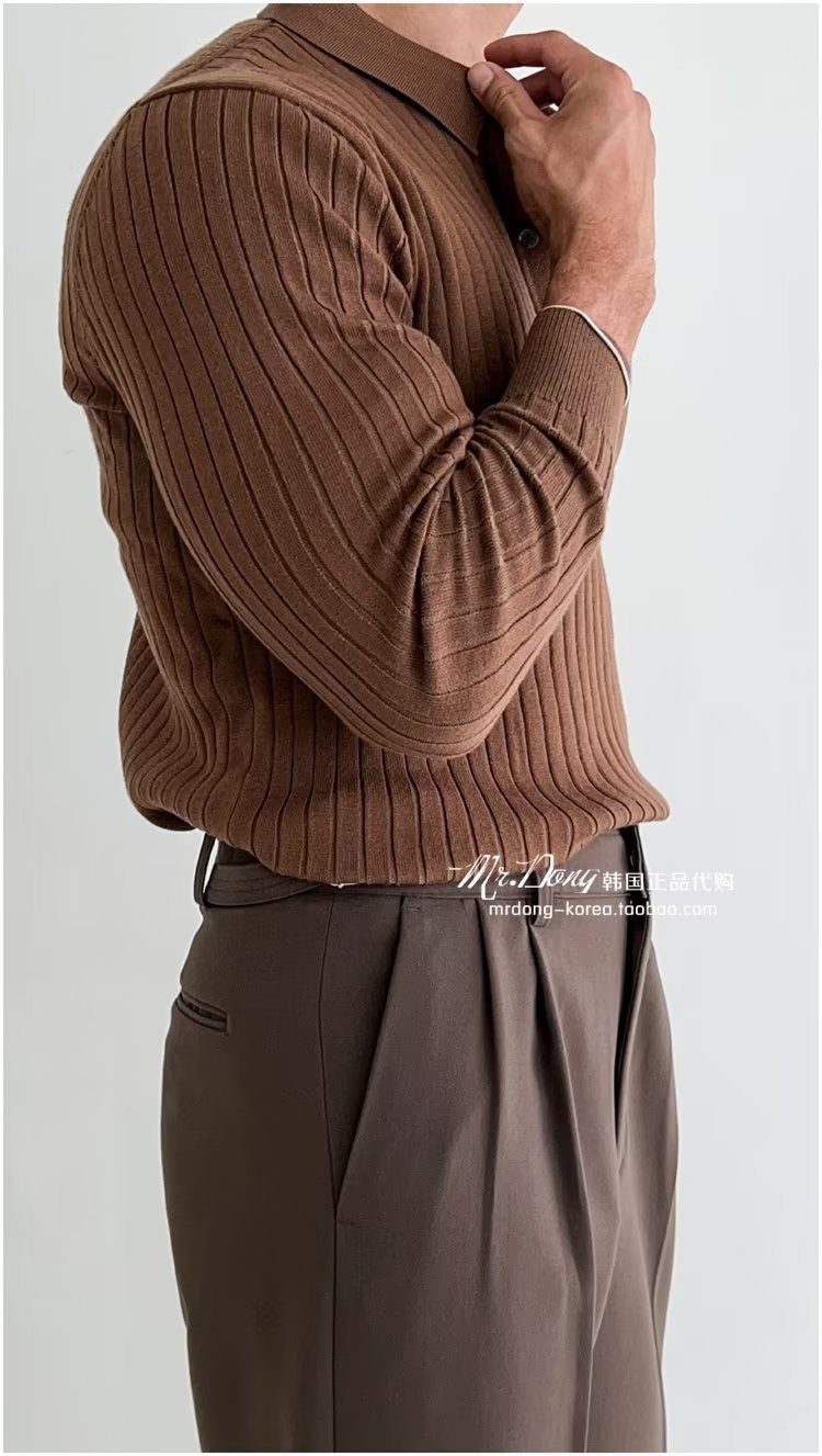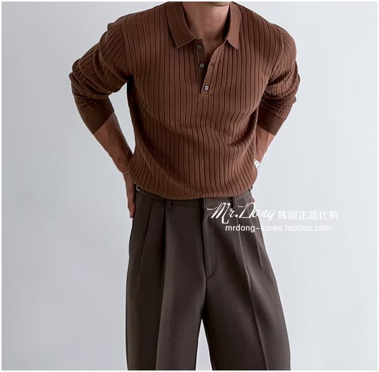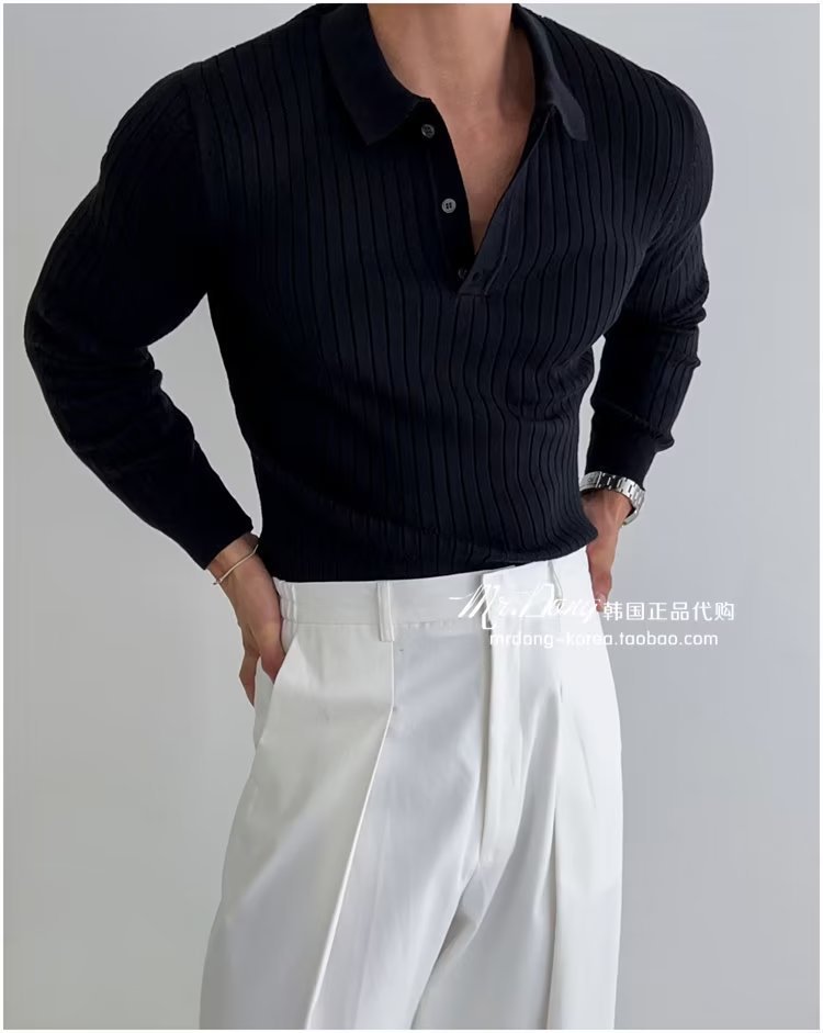 针织衫长袖POLO衫男秋季新款潮流简约肌肉健身条纹翻领上衣体恤衫