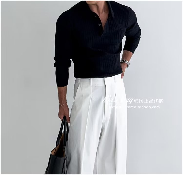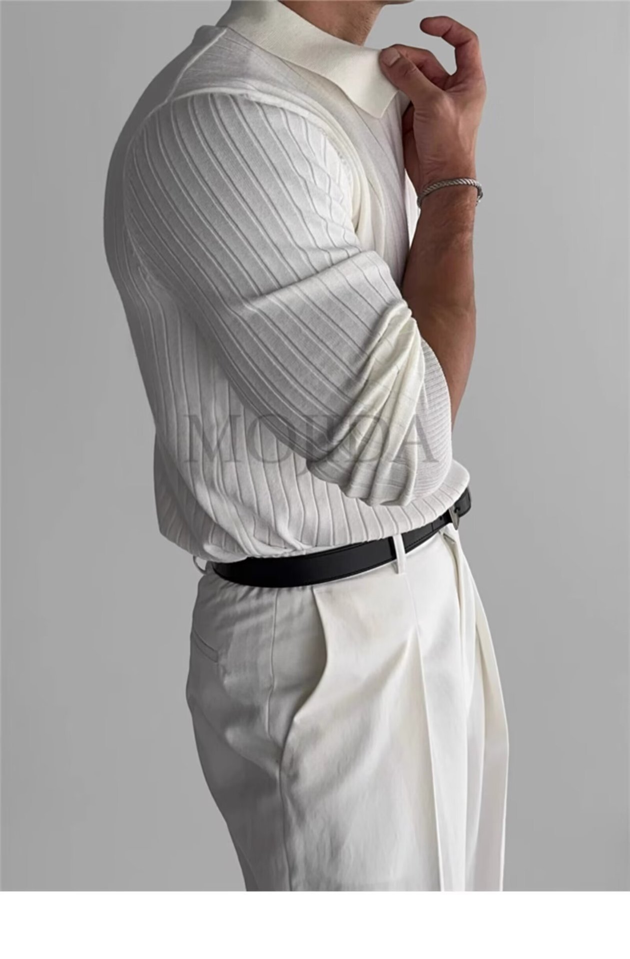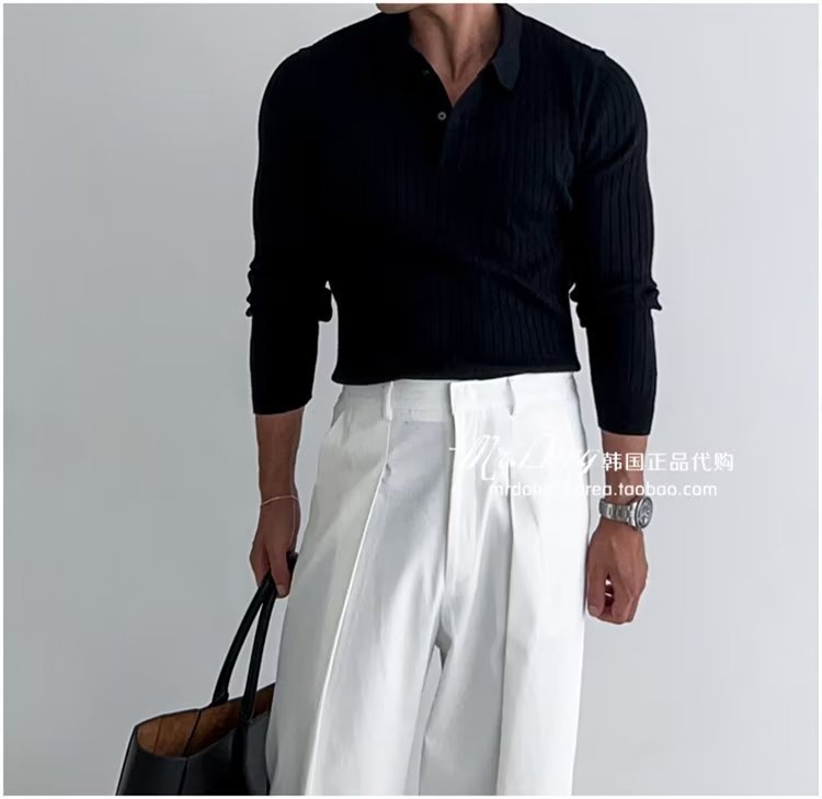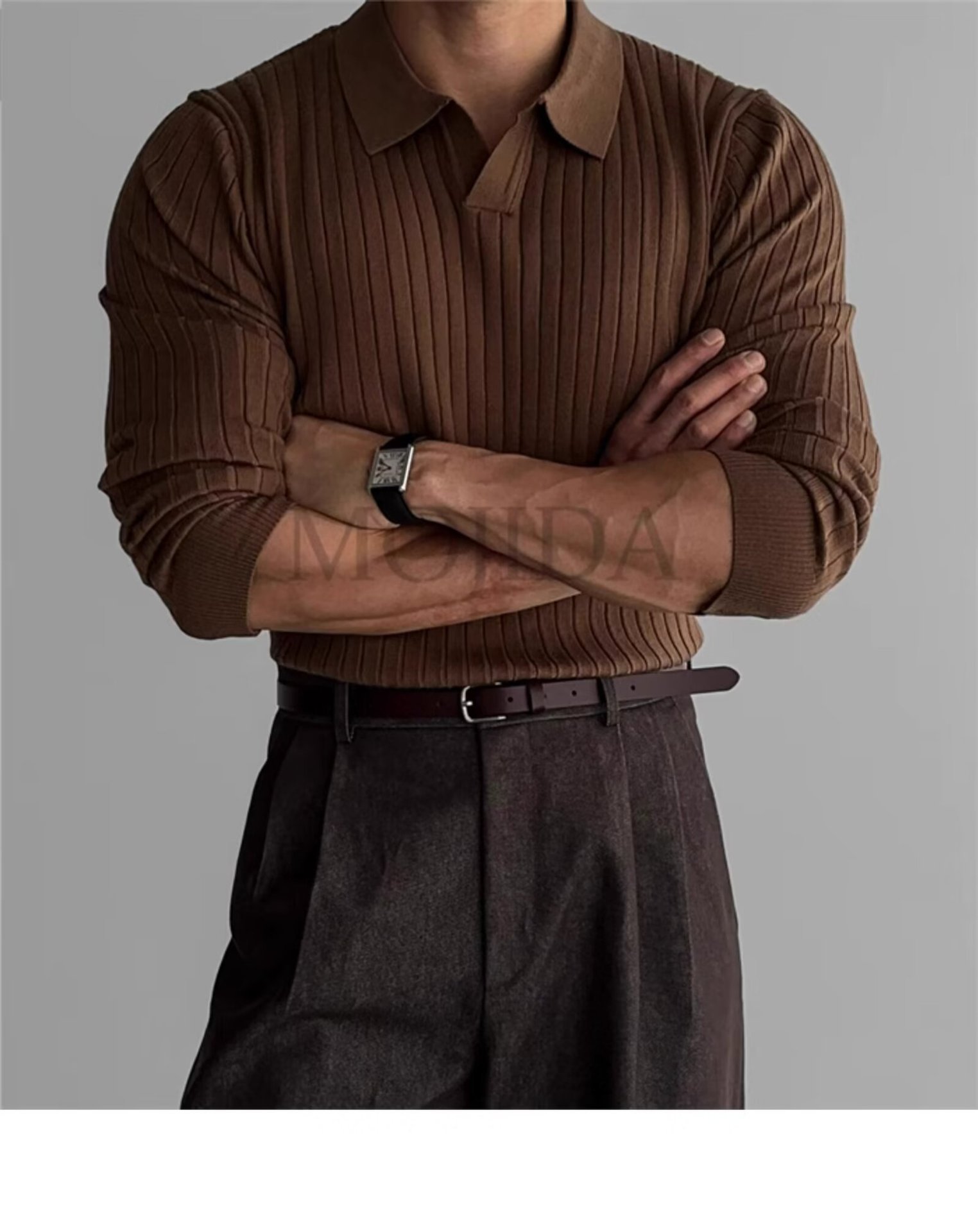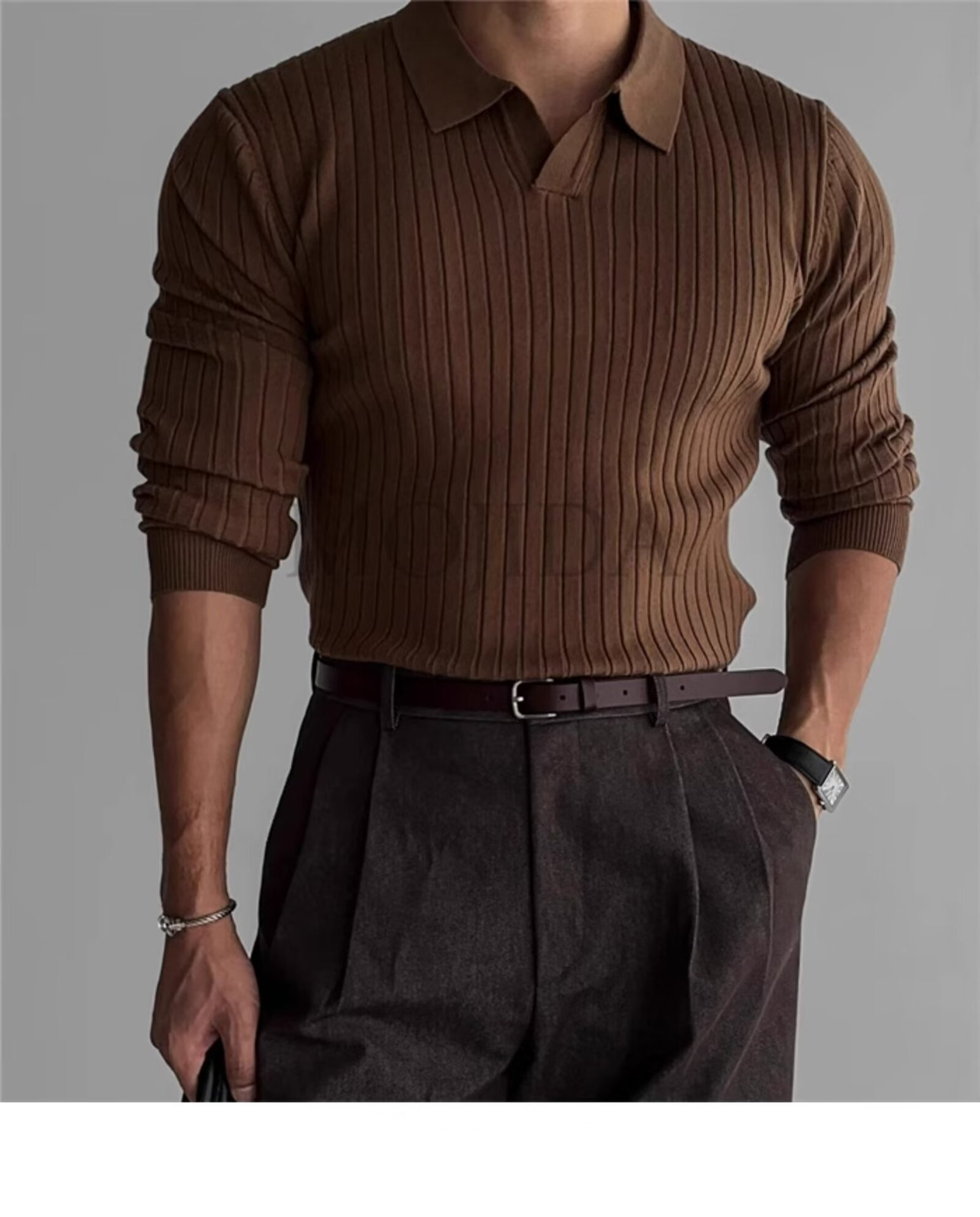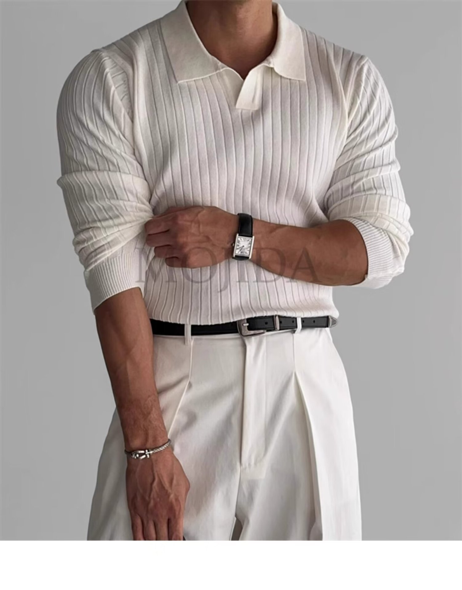 针织衫长袖POLO衫男秋季新款潮流简约肌肉健身条纹翻领上衣体恤衫
