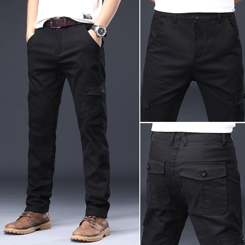 工装裤男弹性直筒宽松舒适多口袋青年汽修工作裤上班裤特种兵军裤
