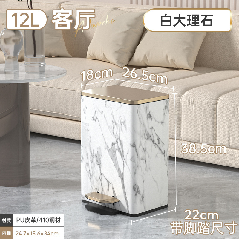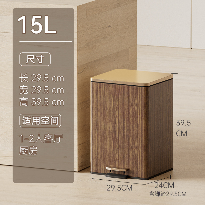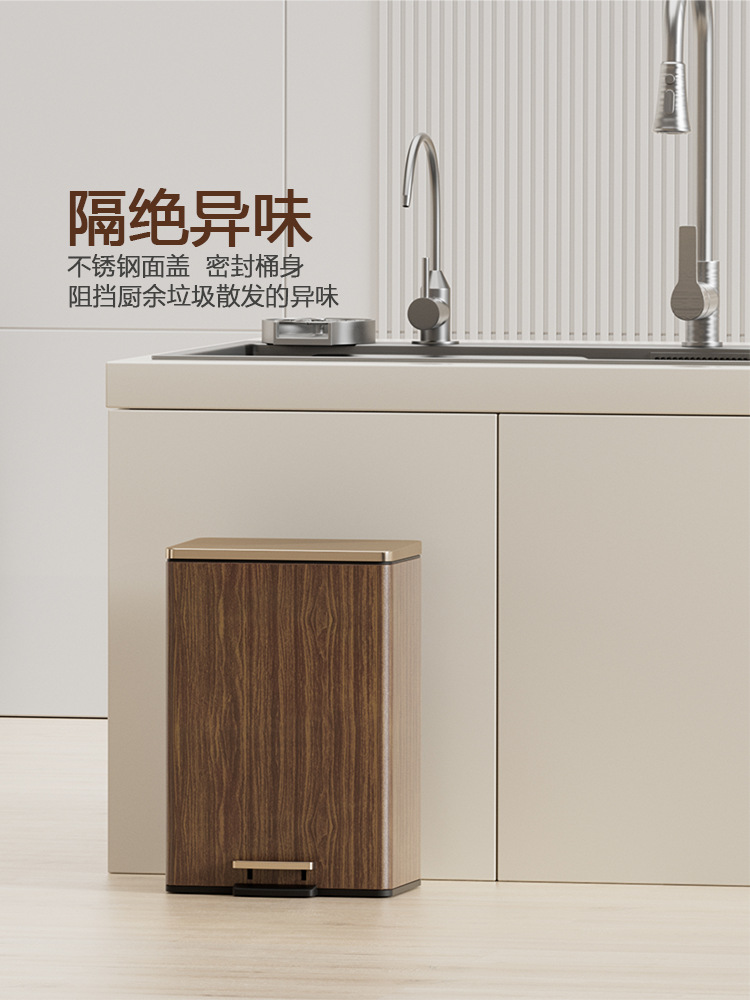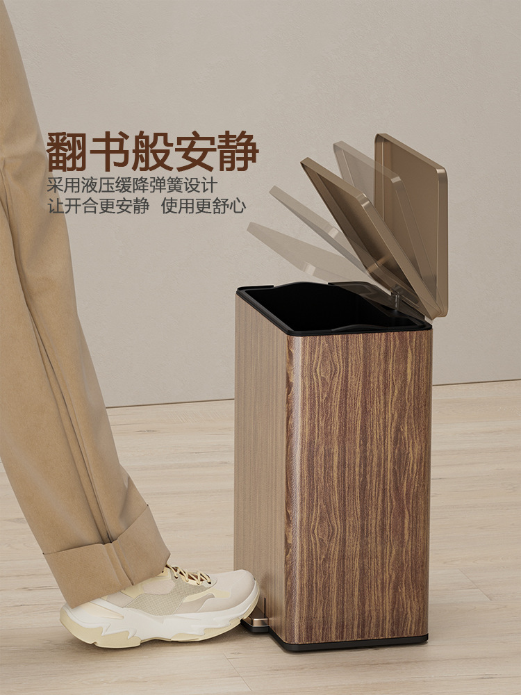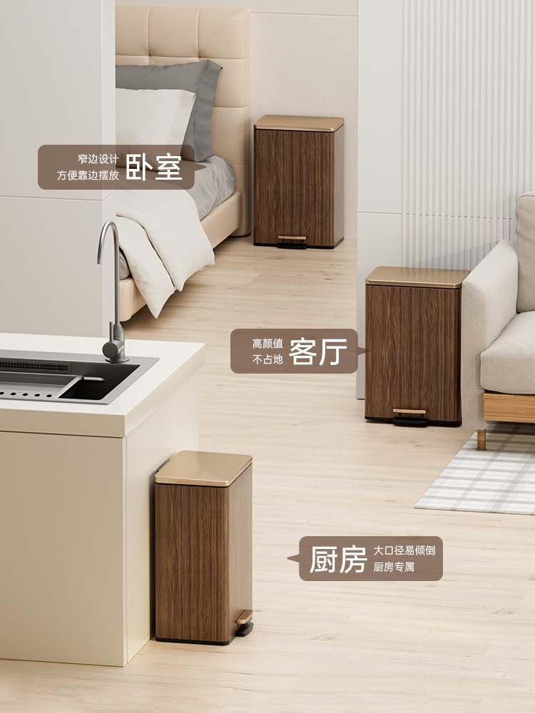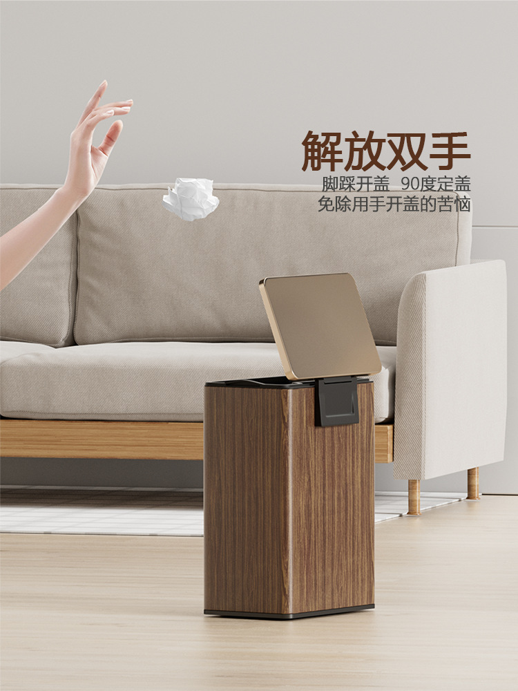 新中式垃圾桶家用客厅轻奢高颜值办公室木纹2024新款胡桃木