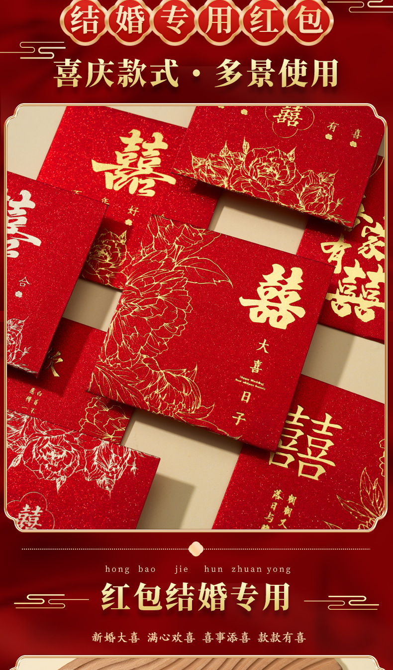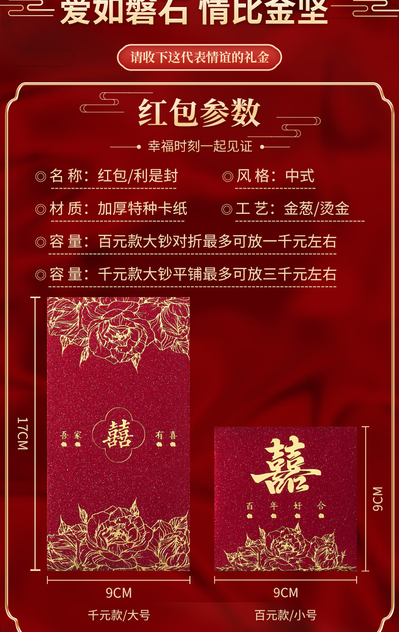结婚红包中式高级随份子改口费堵门红包随礼份子钱喜字利是封大号