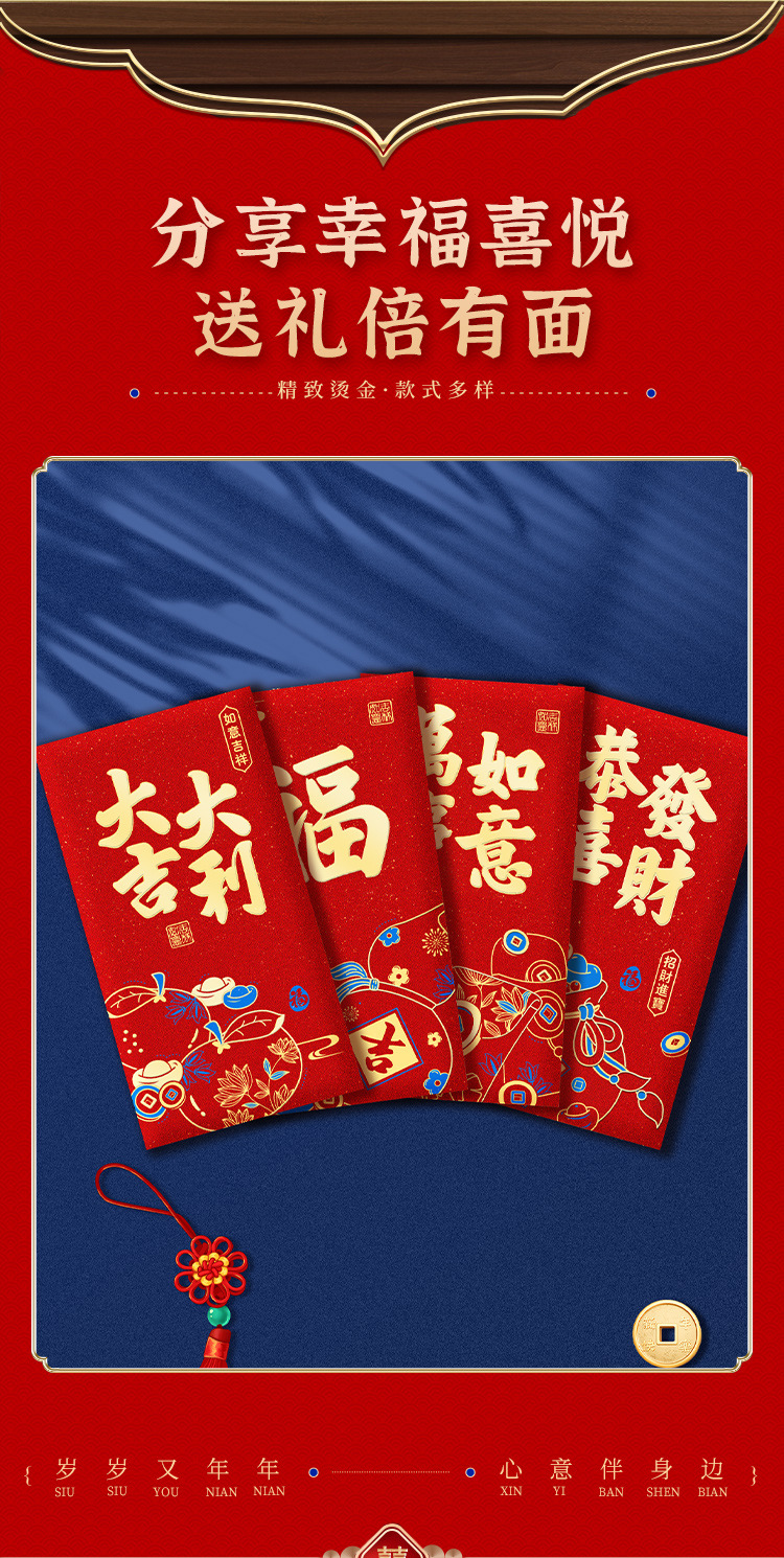 | gold leaf hard paper red envelope (1)(金葱硬纸红包(1个)) | USD $0.05 | 216 piece available |