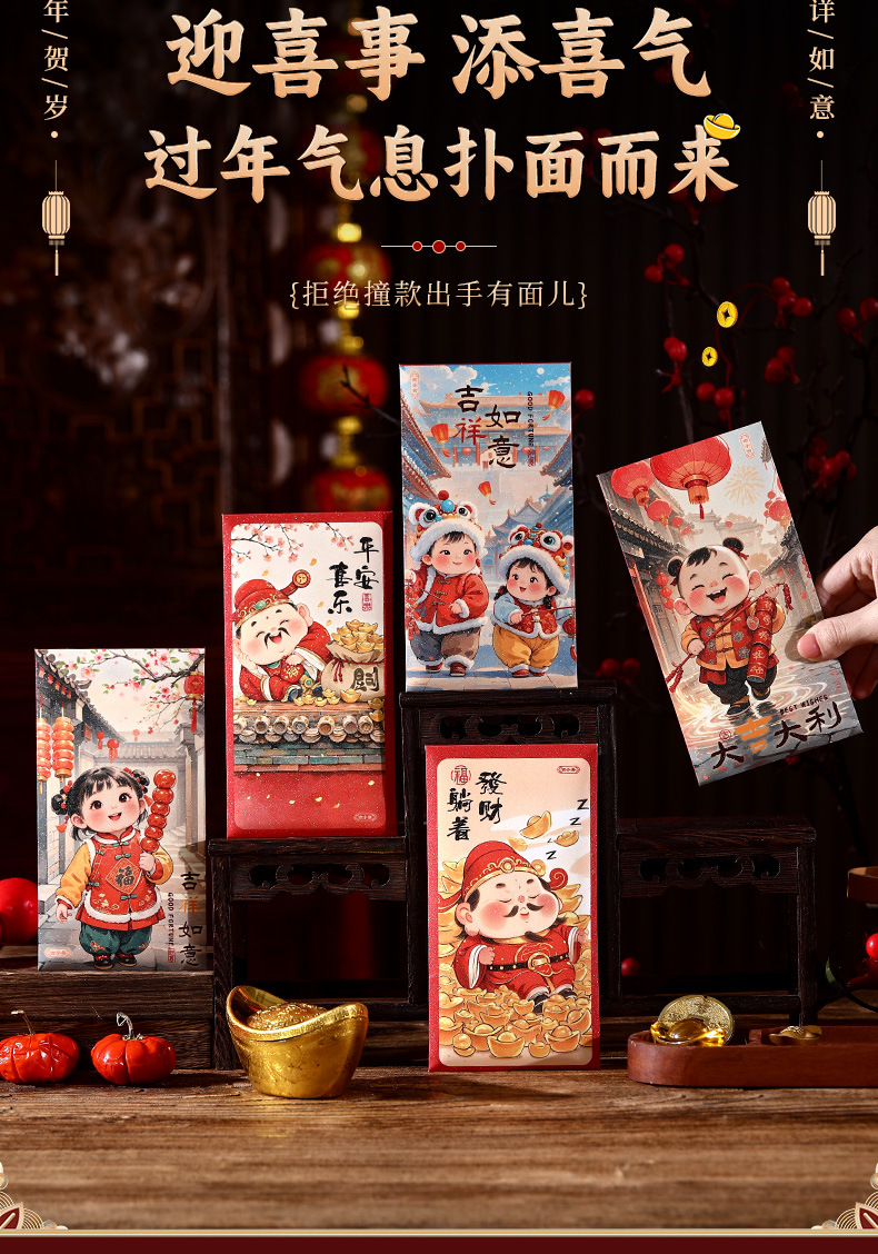 【厂家直发】吉小庆财神红包新款春节儿童创意萌娃利是封红包批发