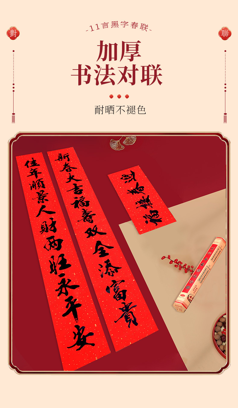 2026年年好新款十一言铜版纸书法黑字对联自建房别墅盒装春联批发