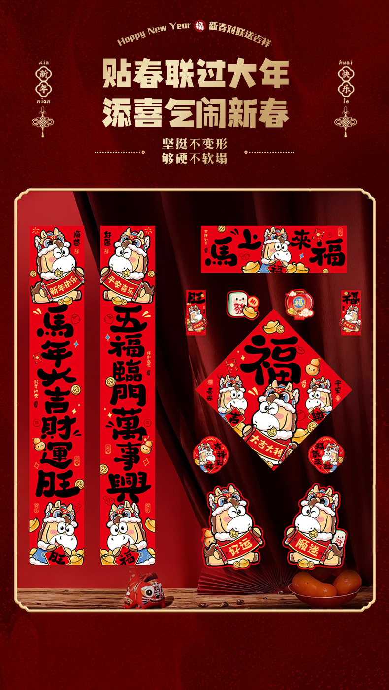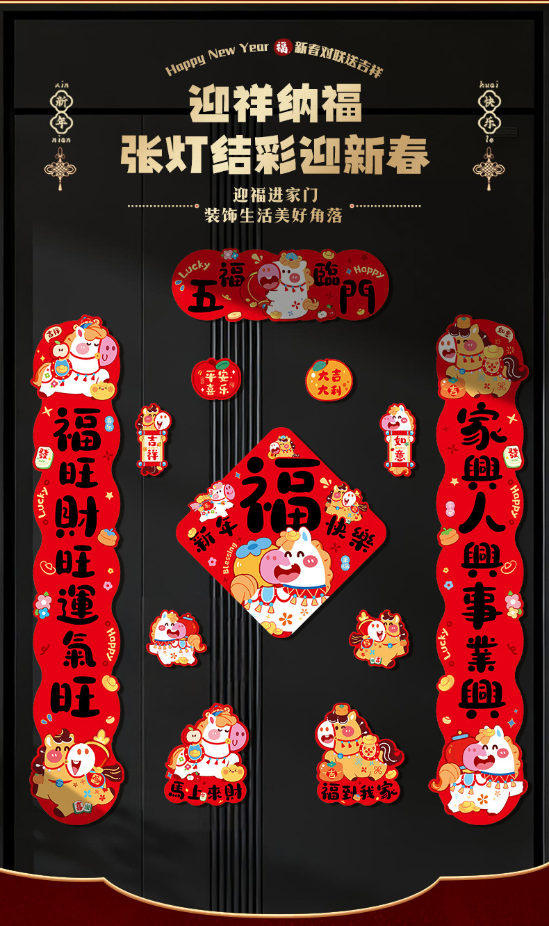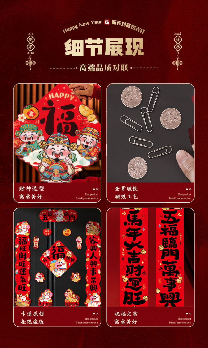 2026马年高端磁吸春节对联入户大门家用福字贴创意新年装饰品现货