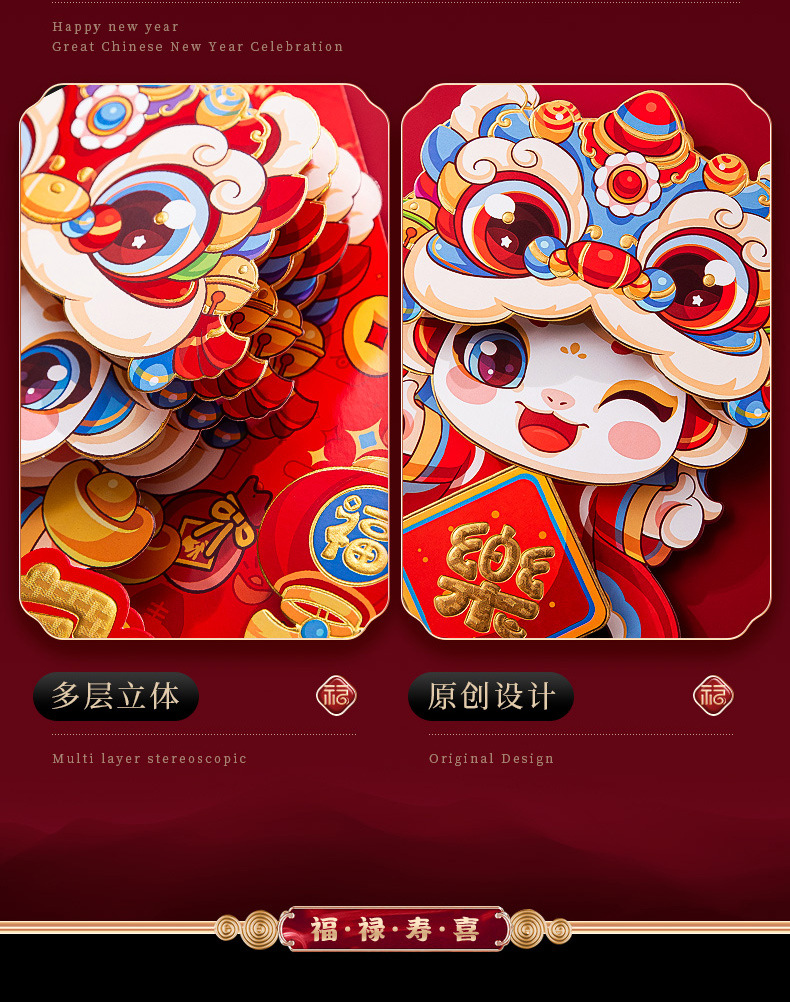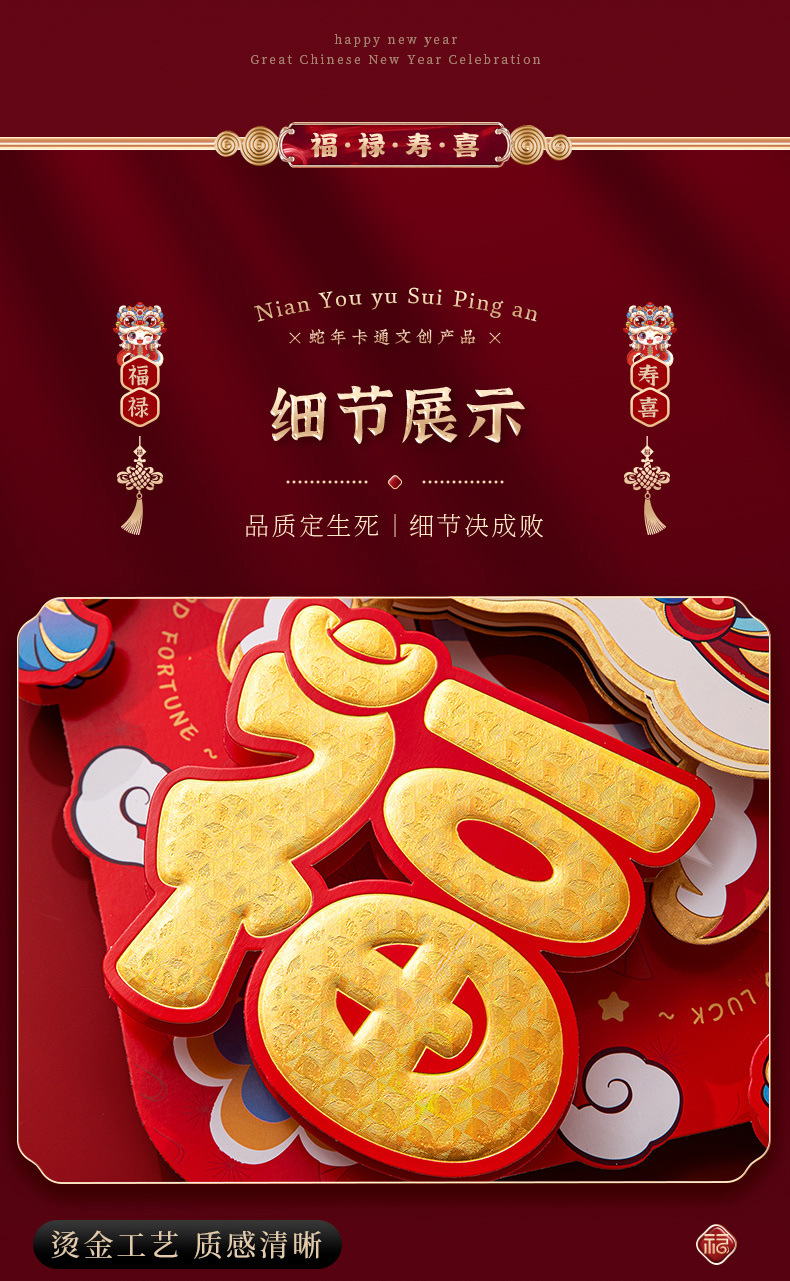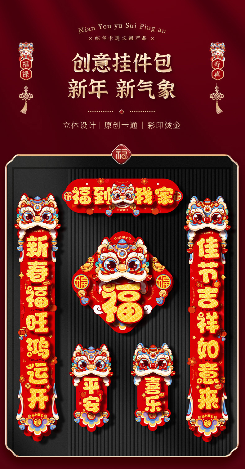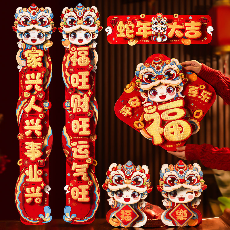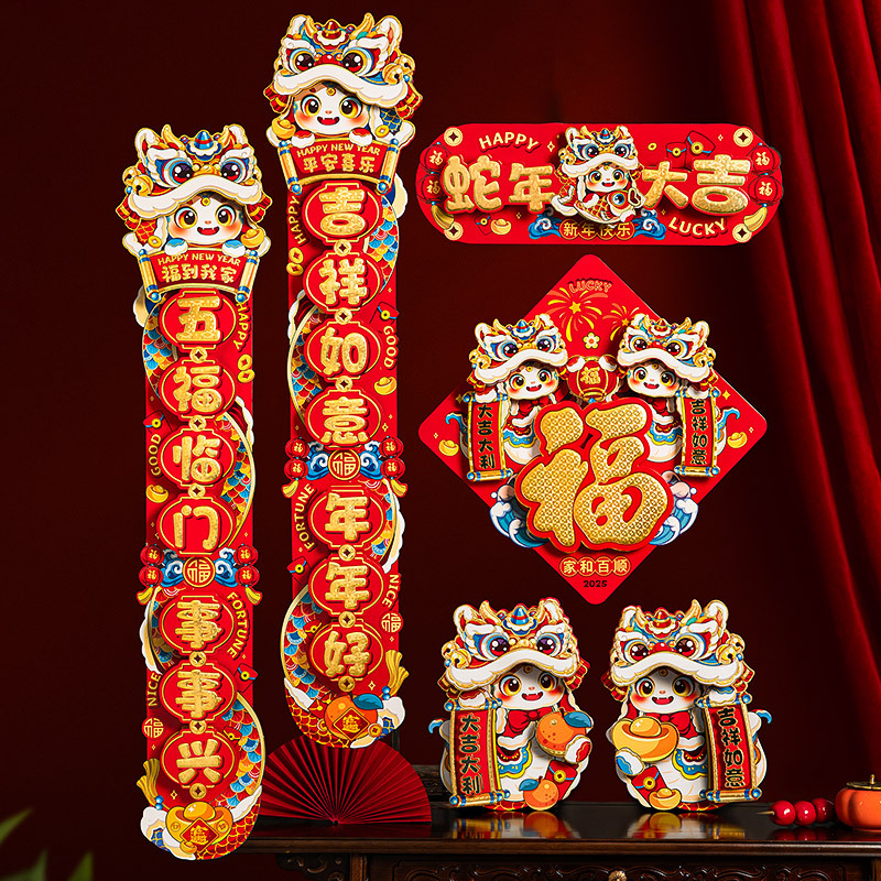 蛇年春联春节对联2025新款过年纸质立体福字门贴家用新年大门装饰