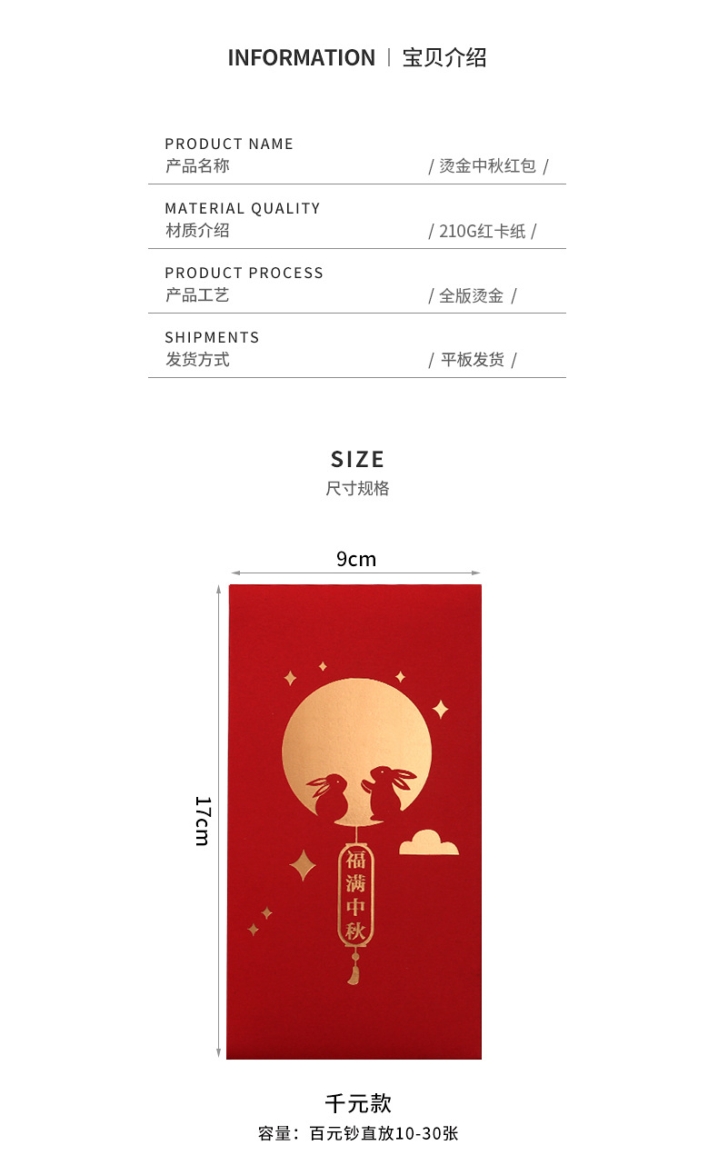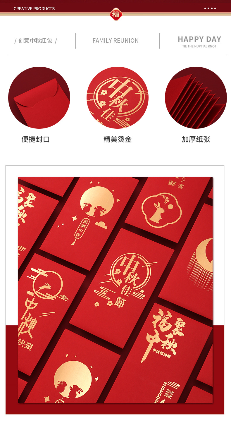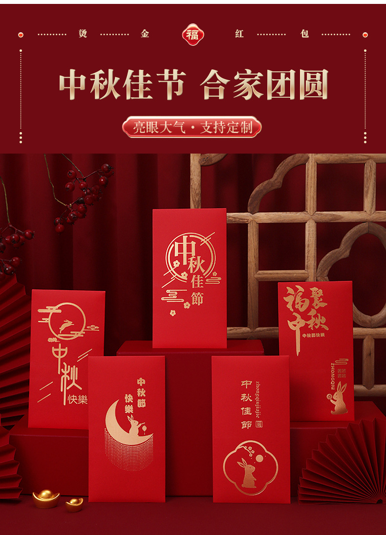 中秋节红包企业送礼公司员工千元福利袋个性化利是封节日LOGO定制