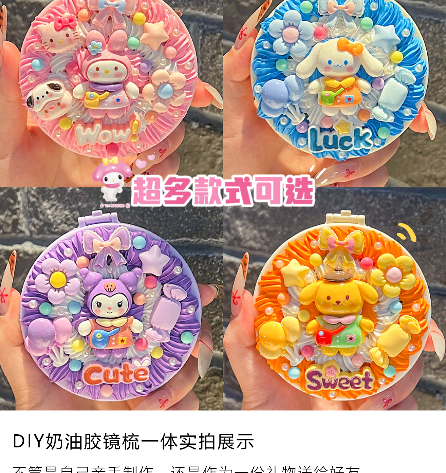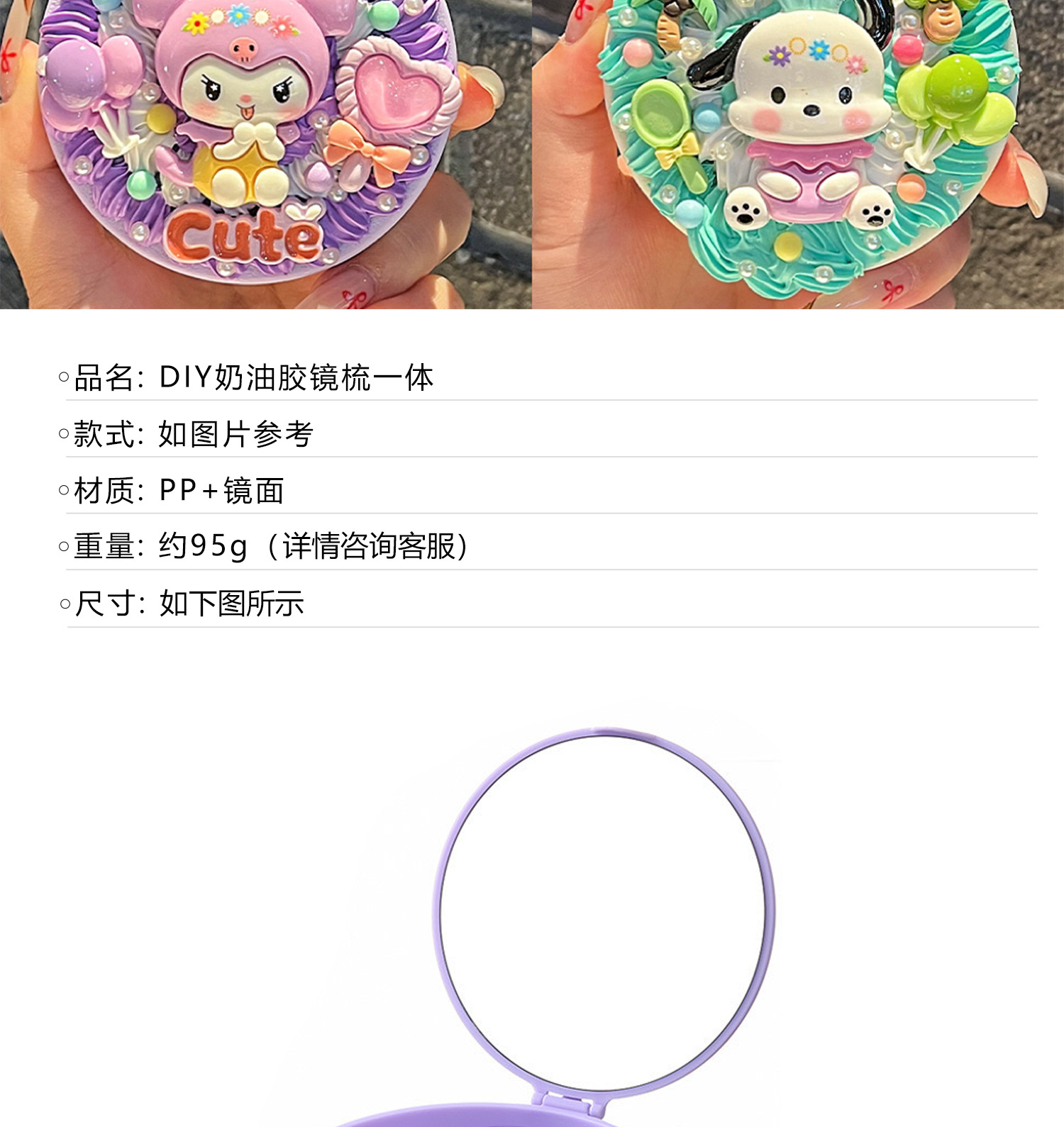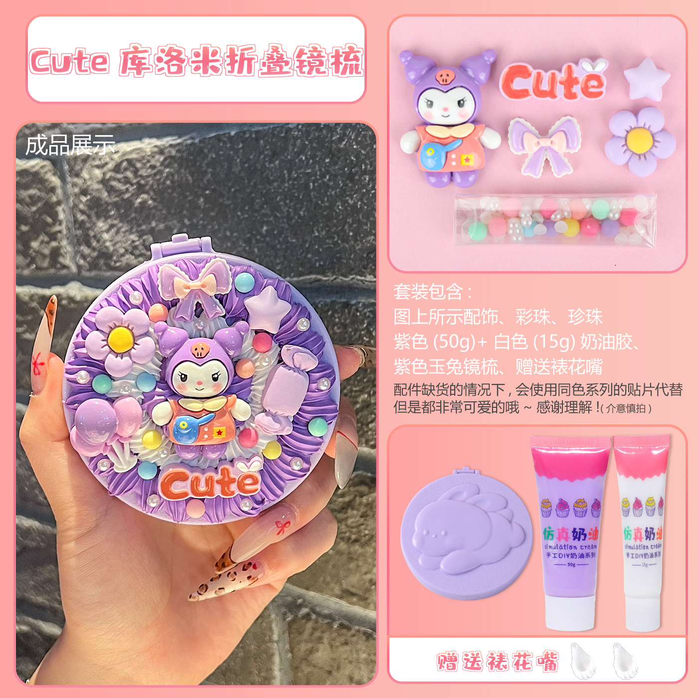 女孩子奶油胶diy折叠镜梳库洛米材料包手工气垫梳子儿童益智玩具