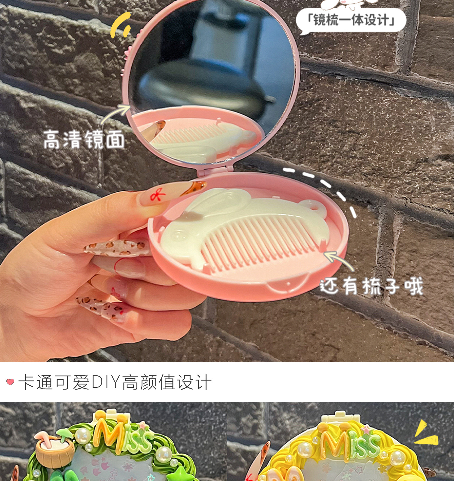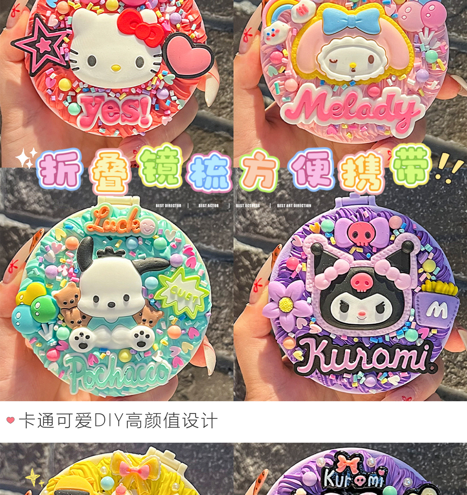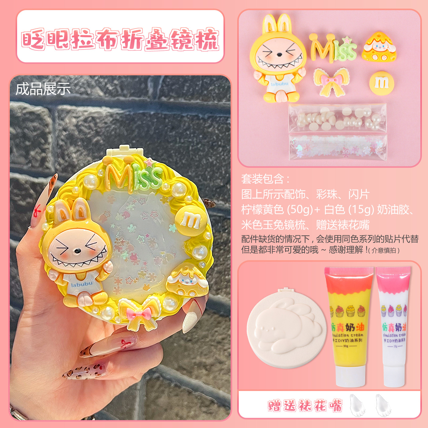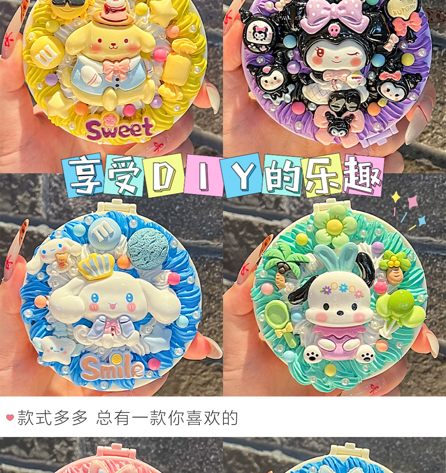 女孩子奶油胶diy折叠镜梳库洛米材料包手工气垫梳子儿童益智玩具