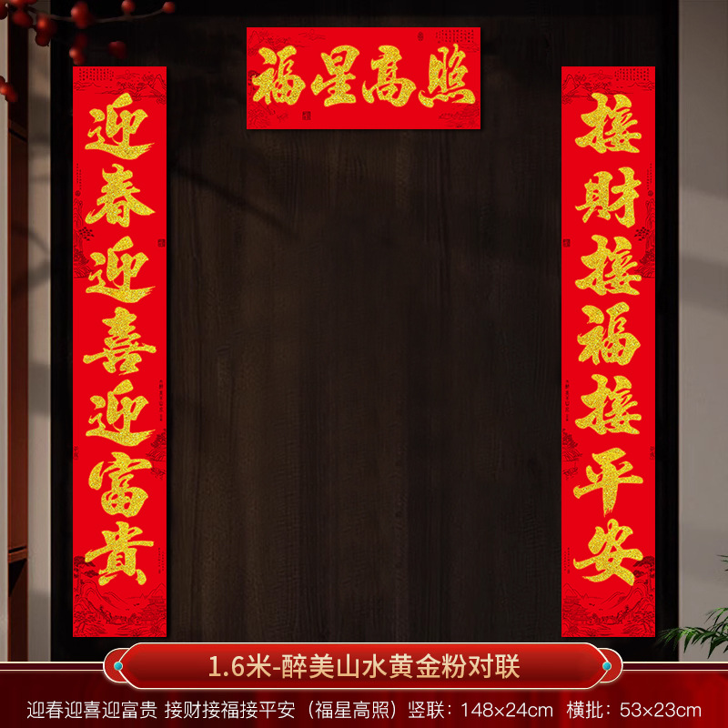 对联批发2026马年植绒金粉新年春节装饰大门春联门贴年画用品布置