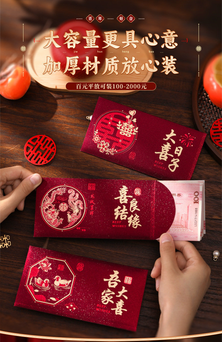2025新款金葱磨砂横款结婚红包个性创意中式改口红包袋批发利是封