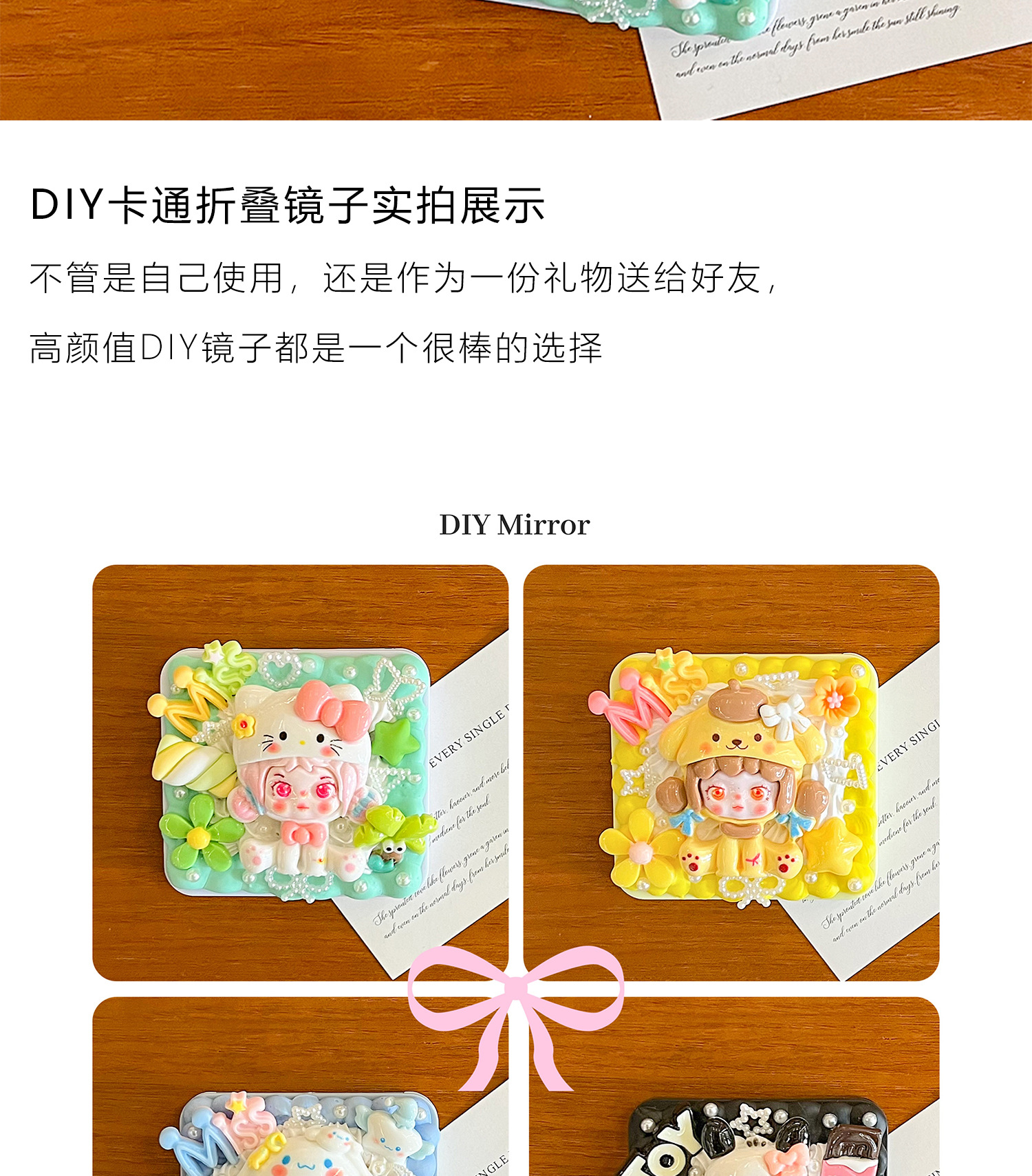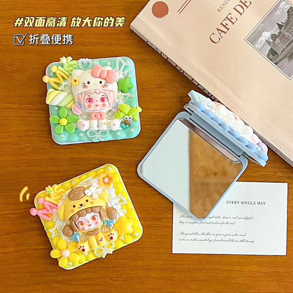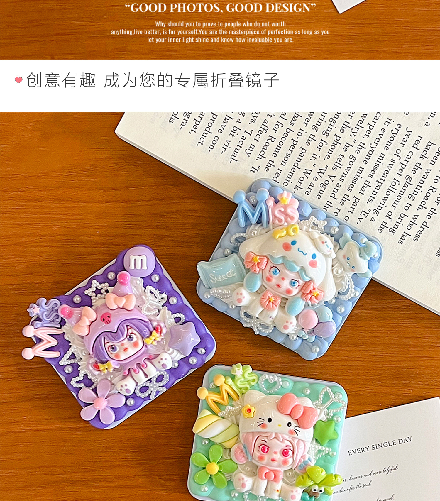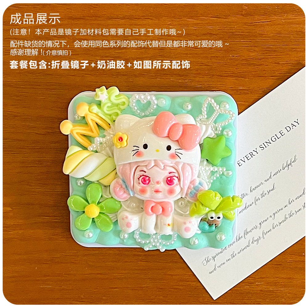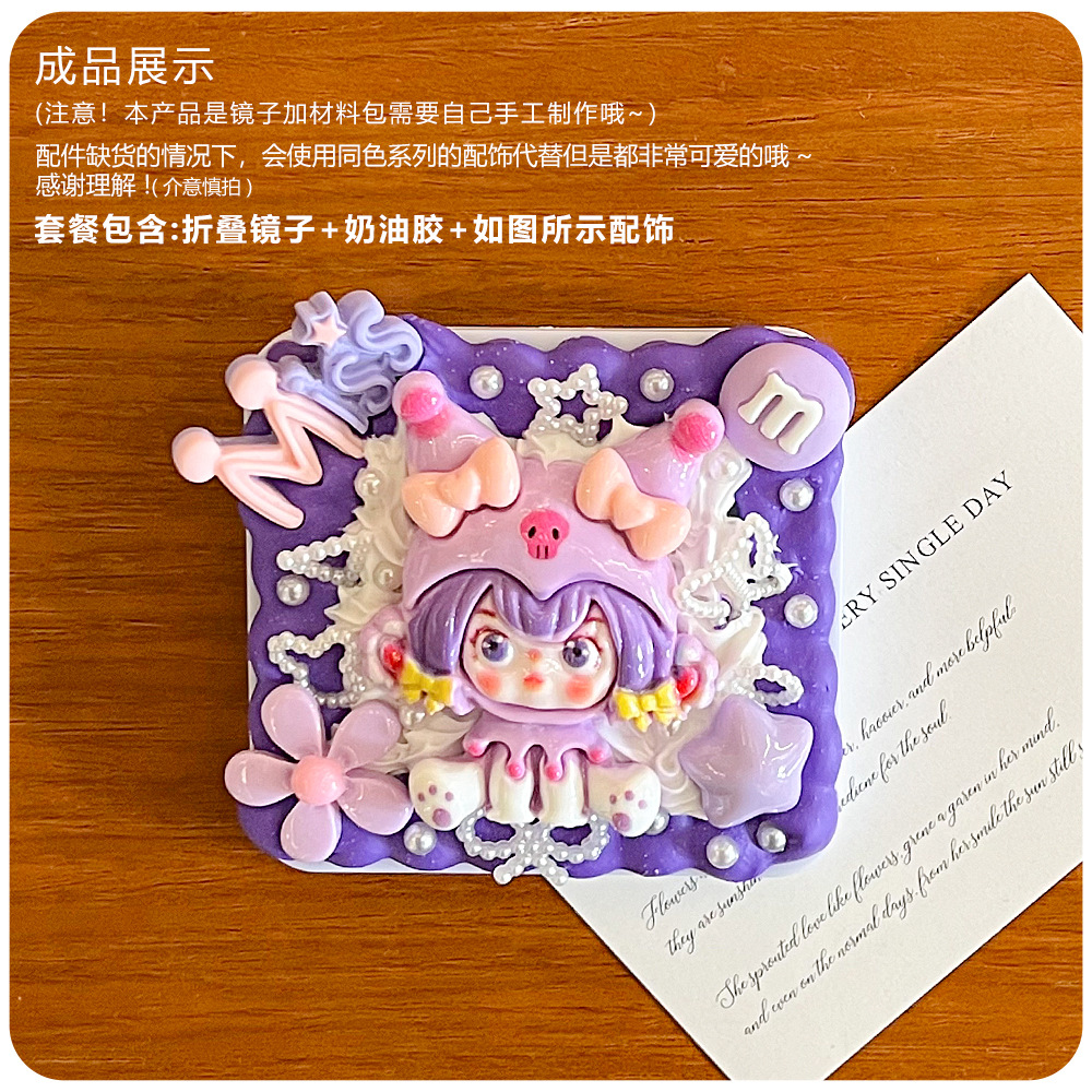 女孩子奶油胶手工diy正方形折叠镜子卡通三丽欧材料包化妆镜礼物