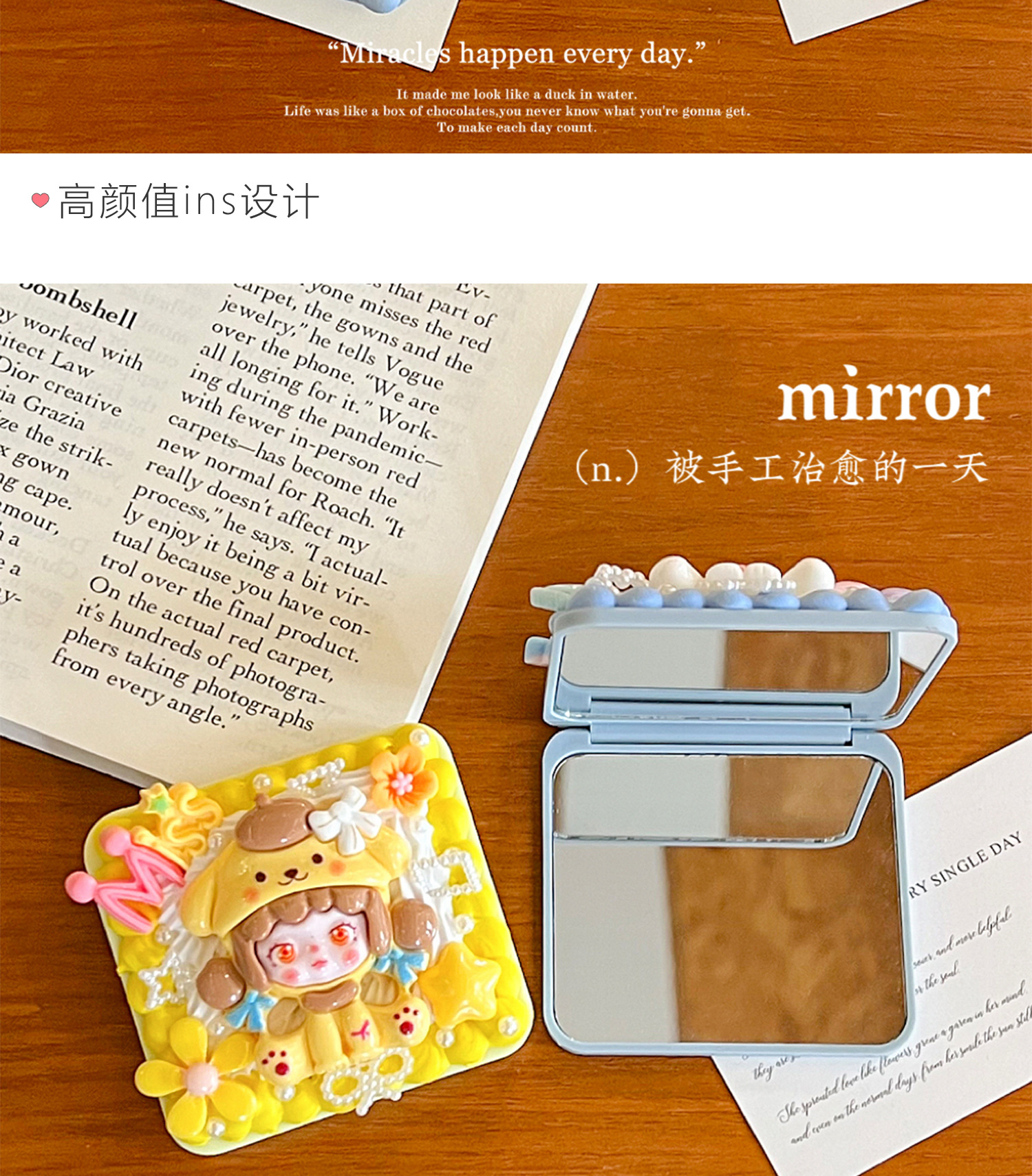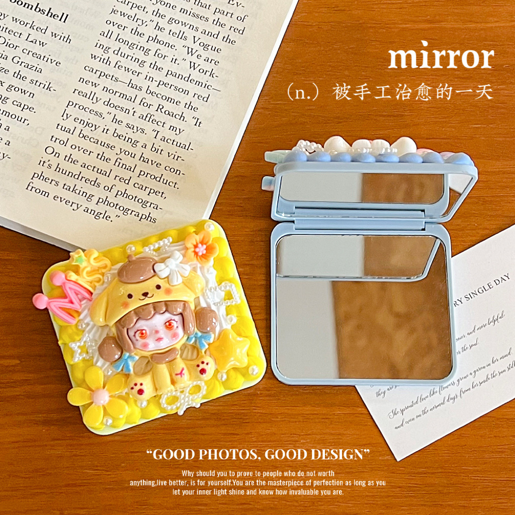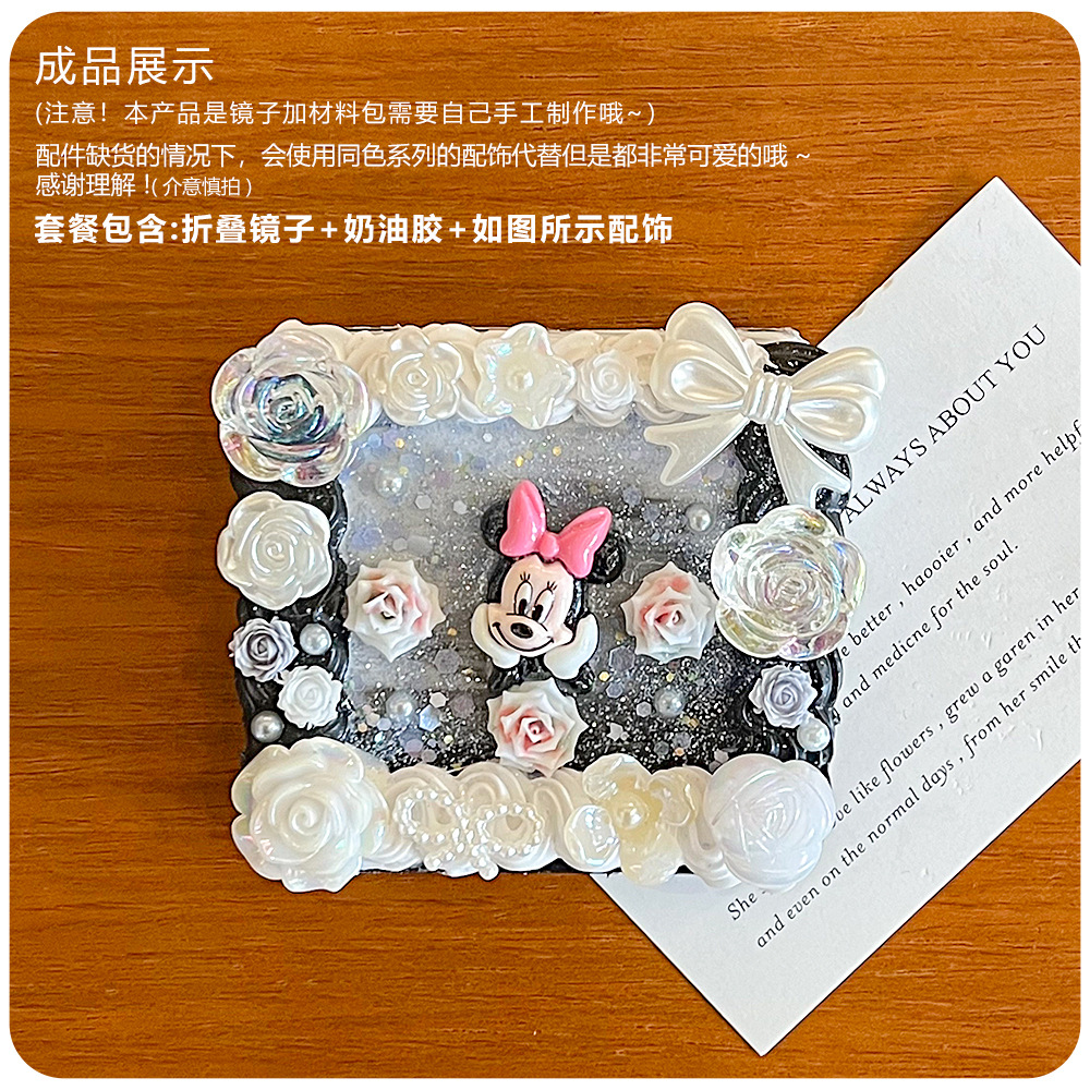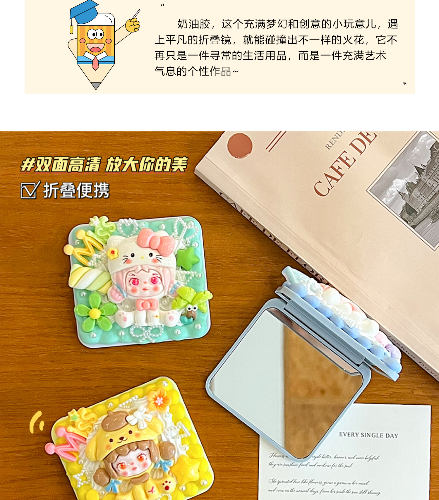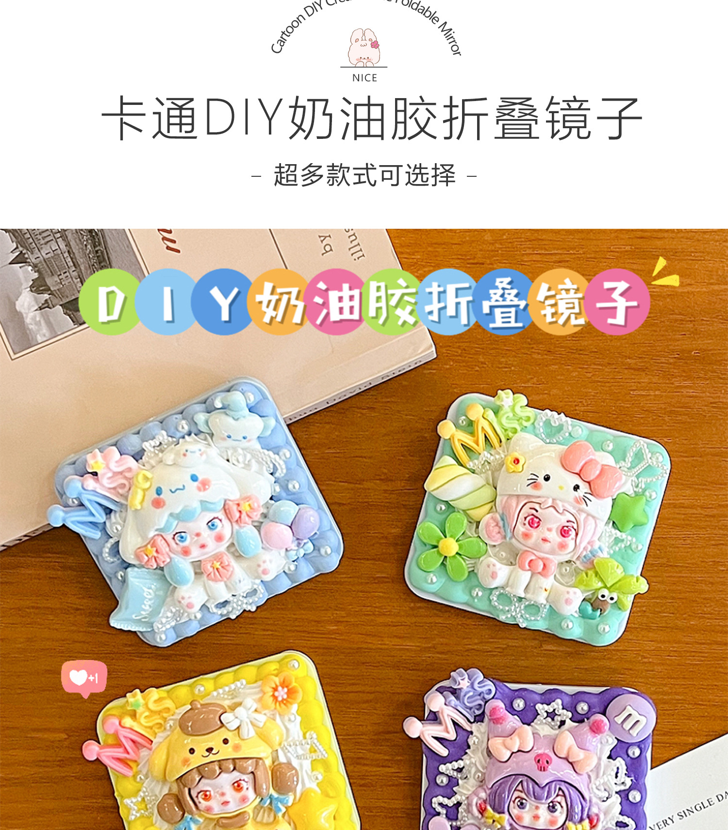女孩子奶油胶手工diy正方形折叠镜子卡通三丽欧材料包化妆镜礼物